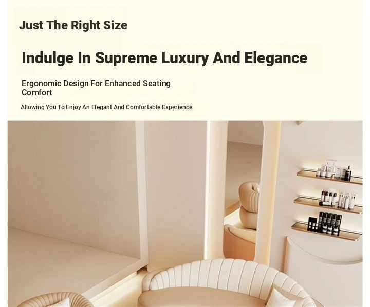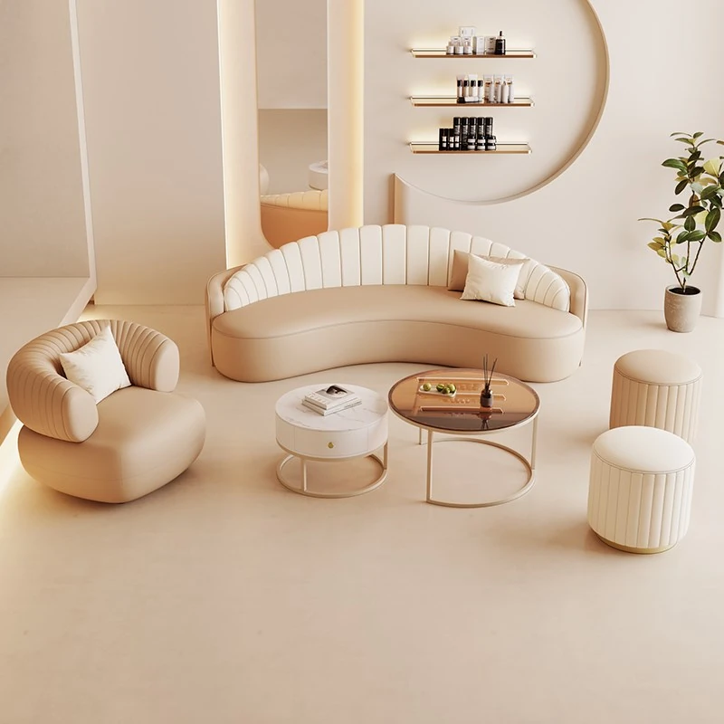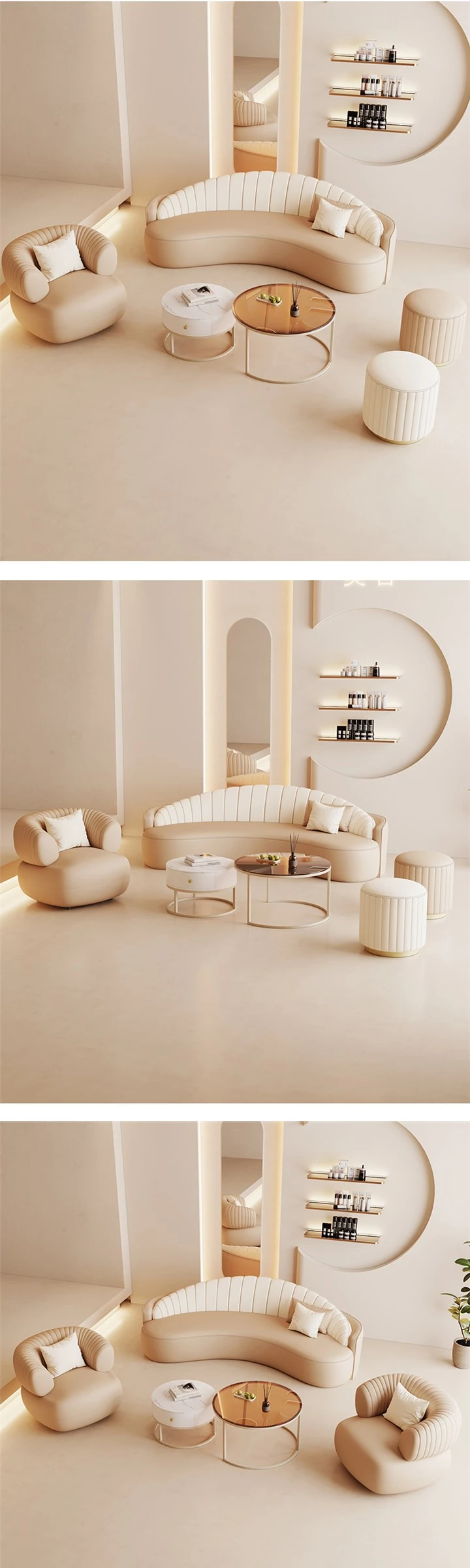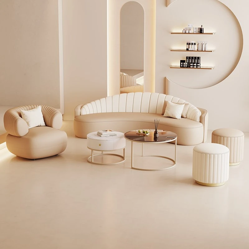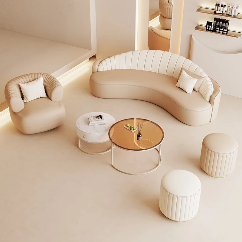 Stylish Curved Cream Sofa - Perfect for Beauty Salons, Reception Areas, Clothing Stores, and Bridal Shops. Ideal for Small Spaces!