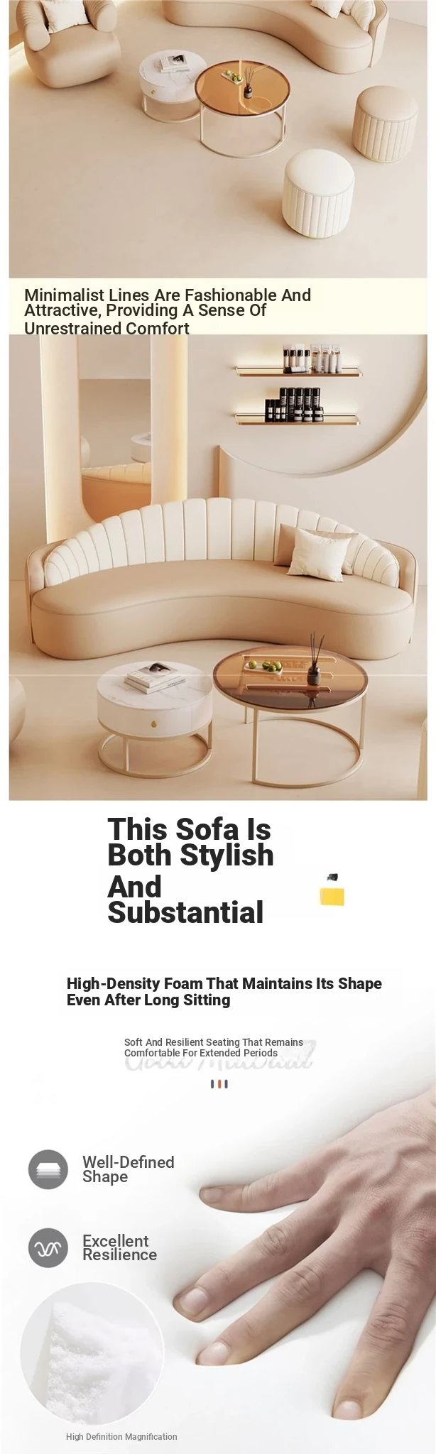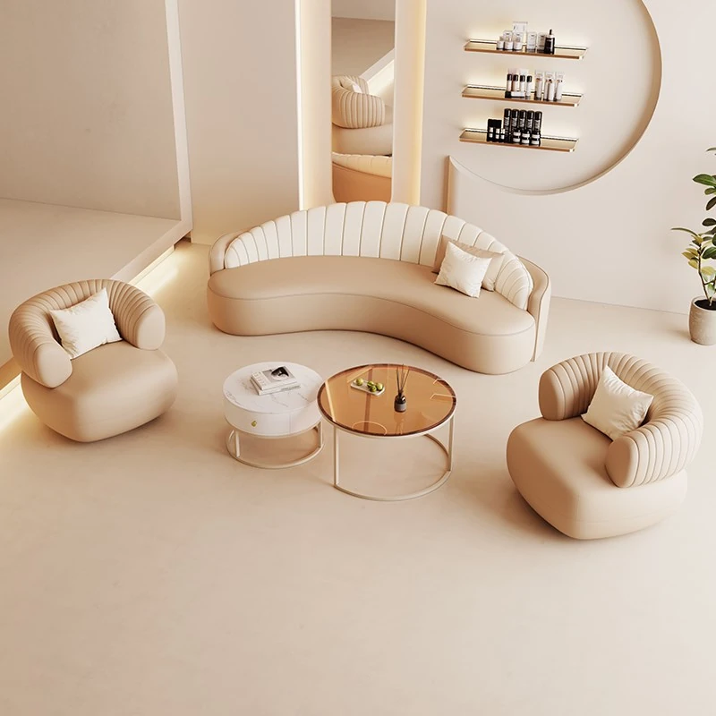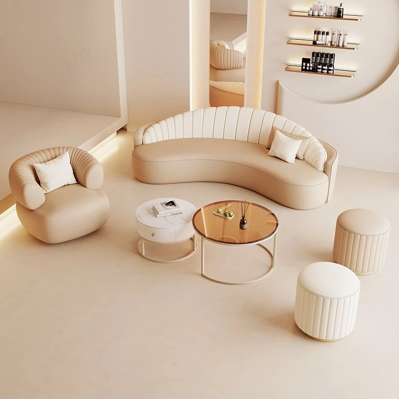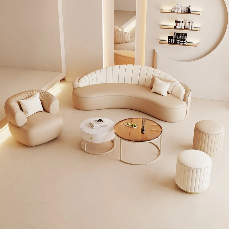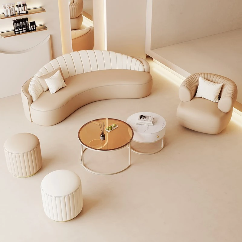 Stylish Curved Cream Sofa - Perfect for Beauty Salons, Reception Areas, Clothing Stores, and Bridal Shops. Ideal for Small Spaces!