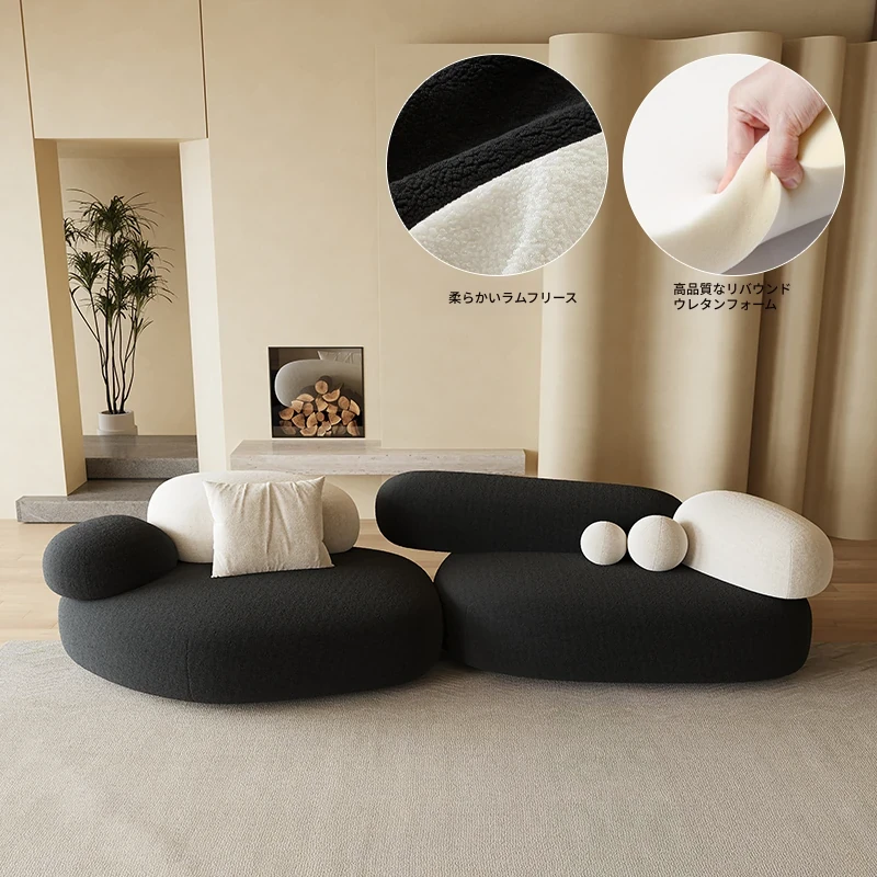 Aタイプソファ+Bタイプソファ ブラックホワイトのツートンカラー デフォルトのラムウール