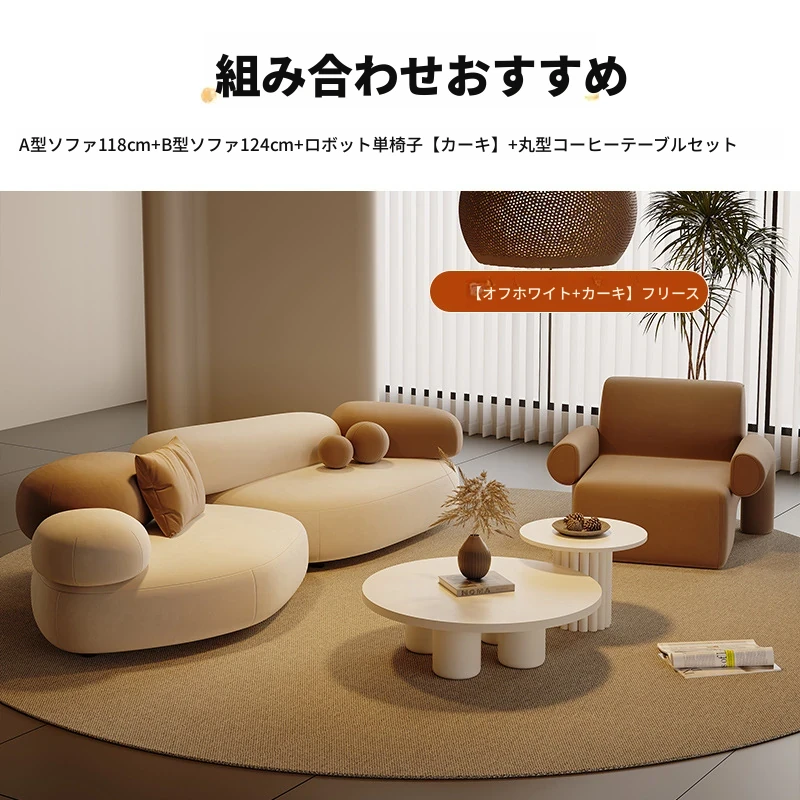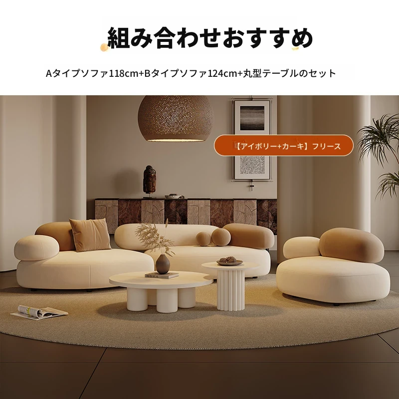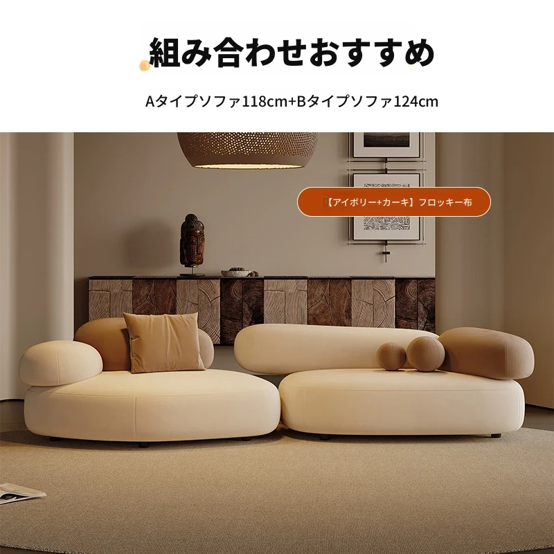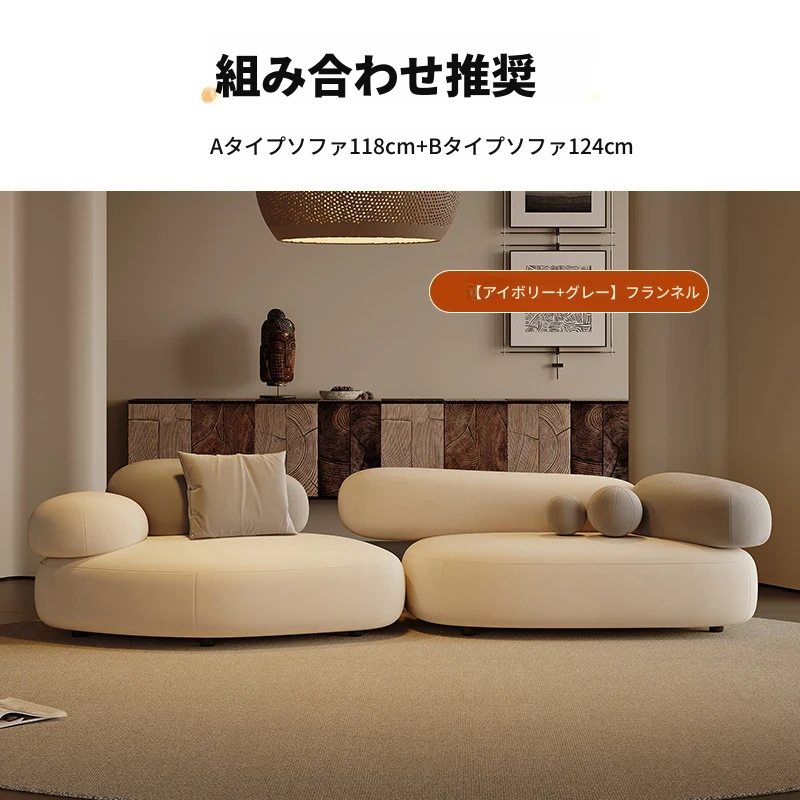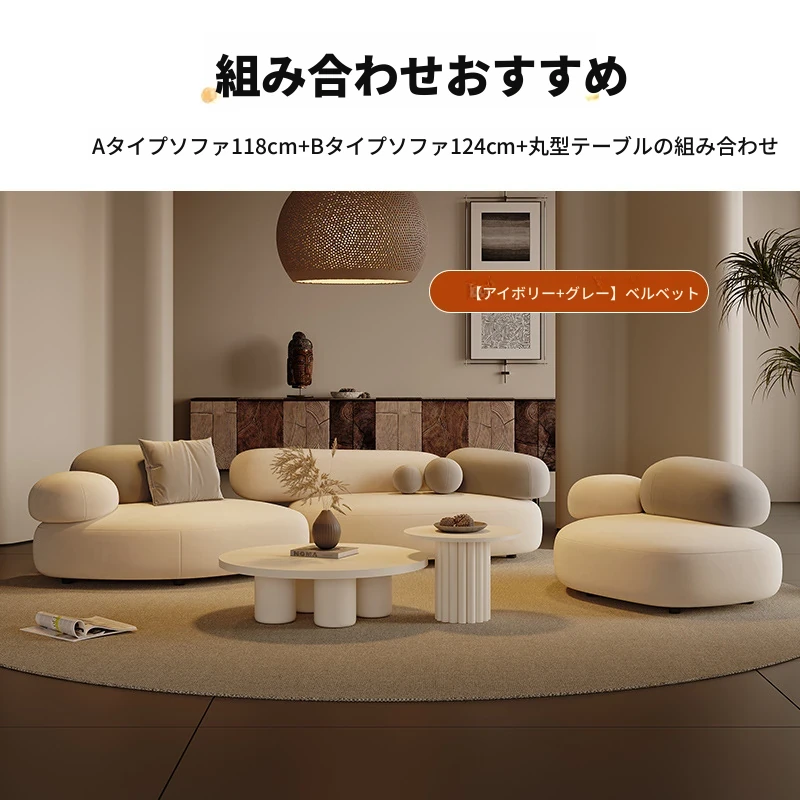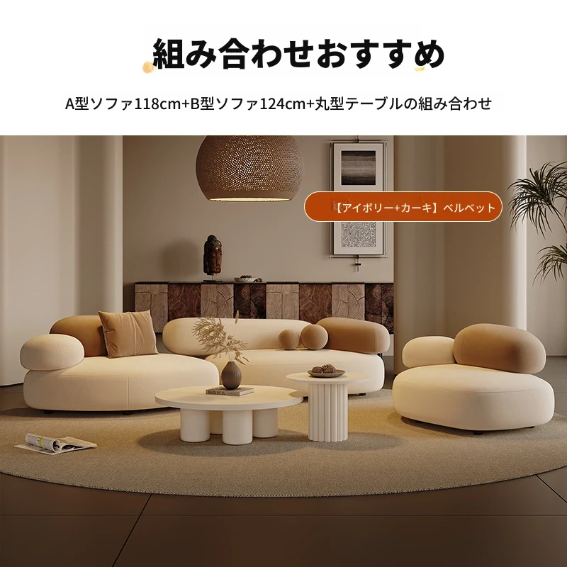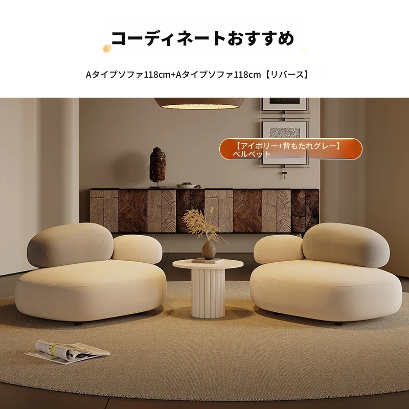 Aタイプソファ+Bタイプソファ カフェホワイトのツートンカラー デフォルトのベルベット