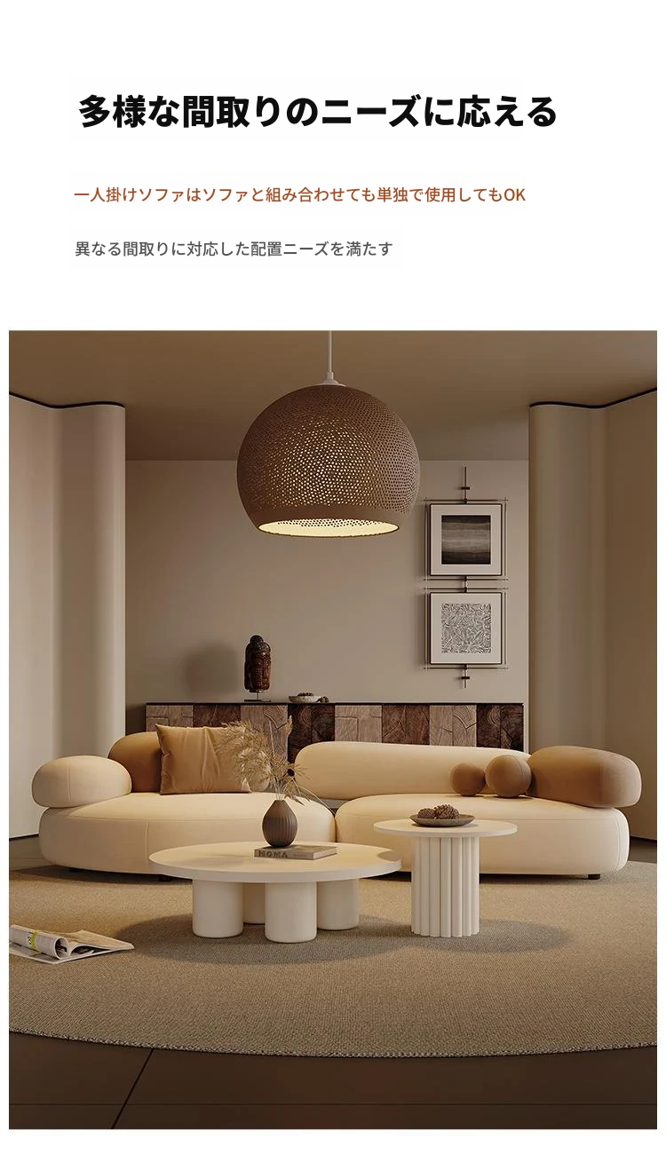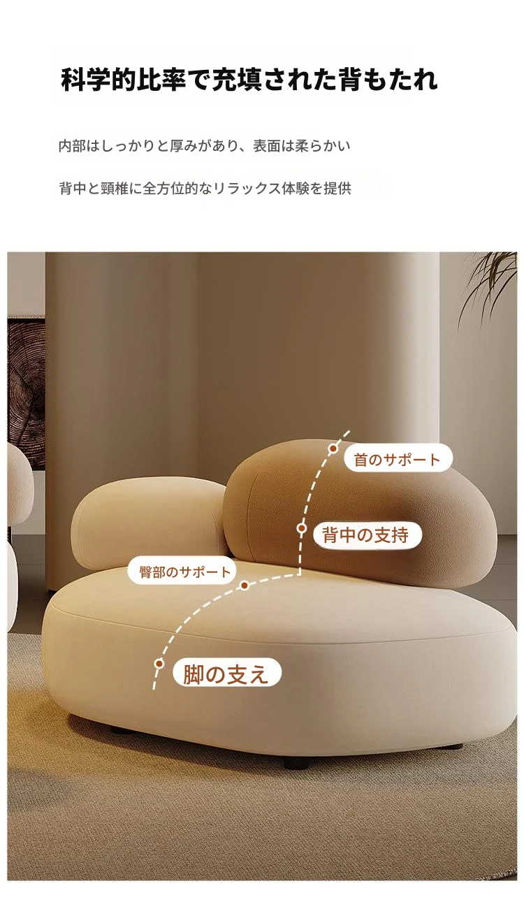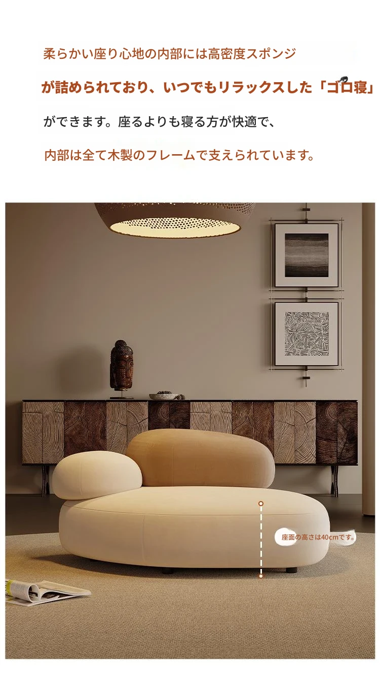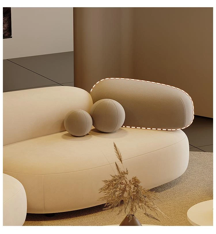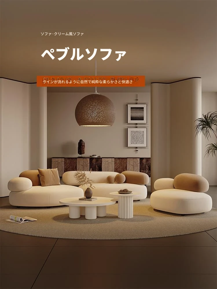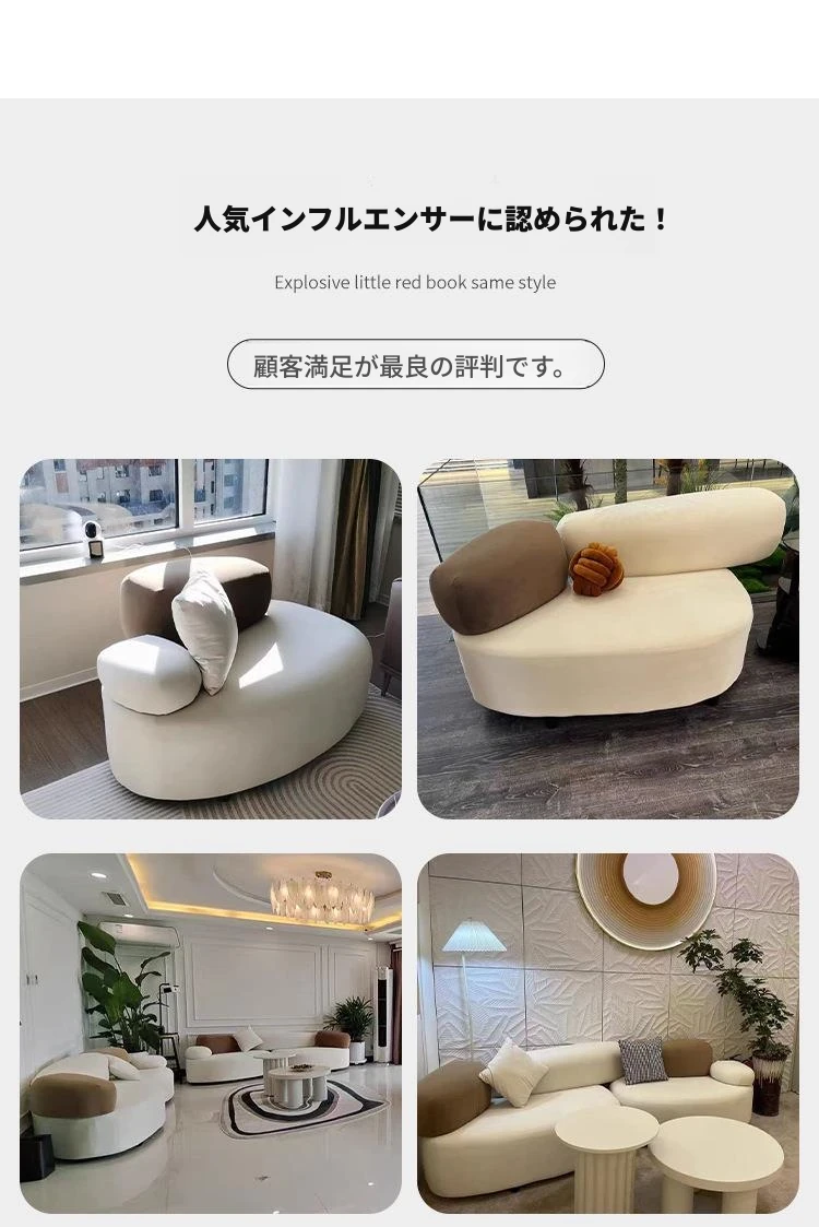 リビングルームのための軽奢感あふれるネットで人気の創造的な卵石ソファ。シンプルでおしゃれなクリームカラー、エステサロンの休憩スペースにぴったりなユニークなデザインのソファ&テーブルセット。あなたの空間を特別に演出します!