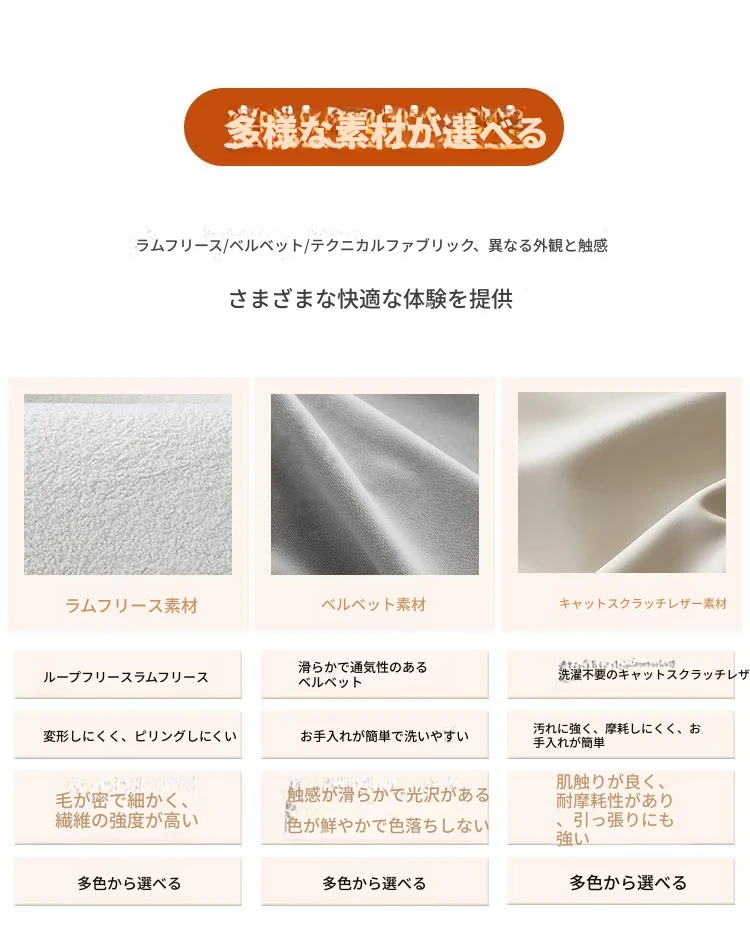 他の素材のカラーコーディネートについてはカスタマーサービスにお問い合わせください
