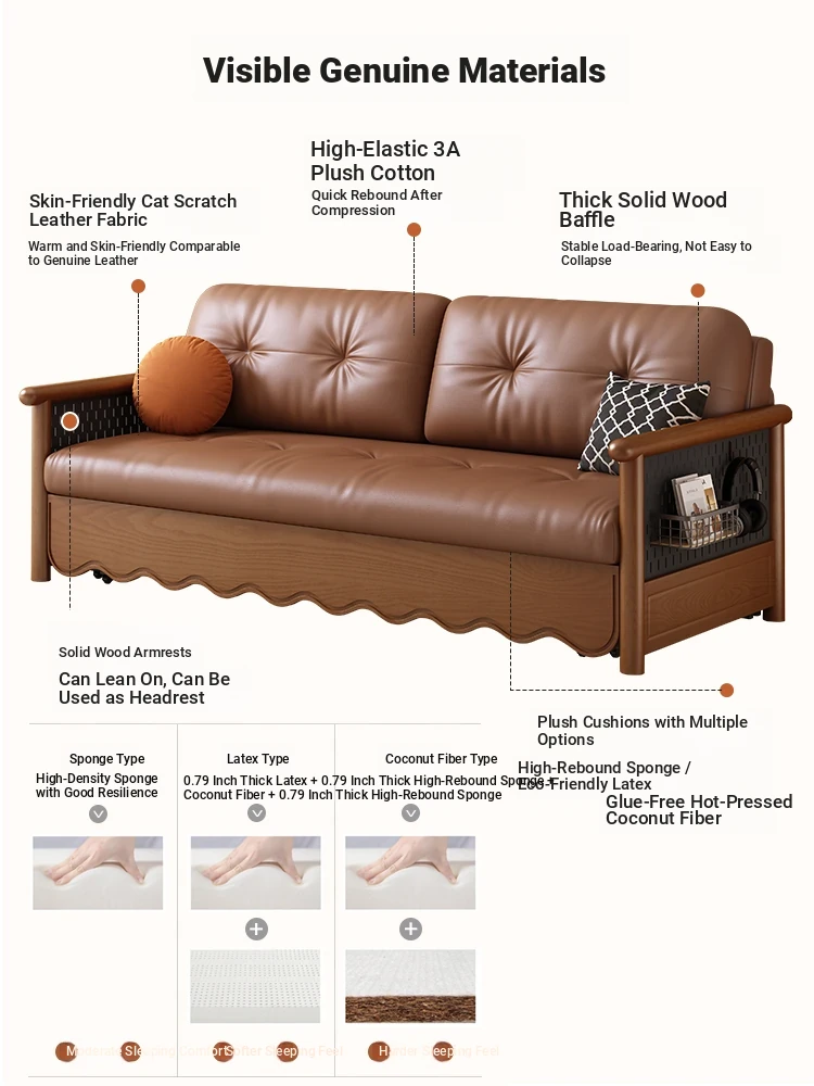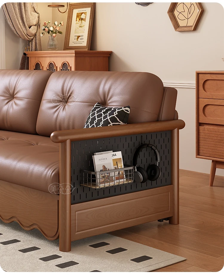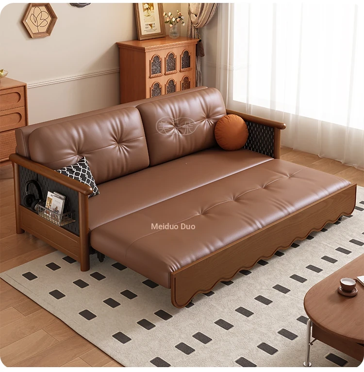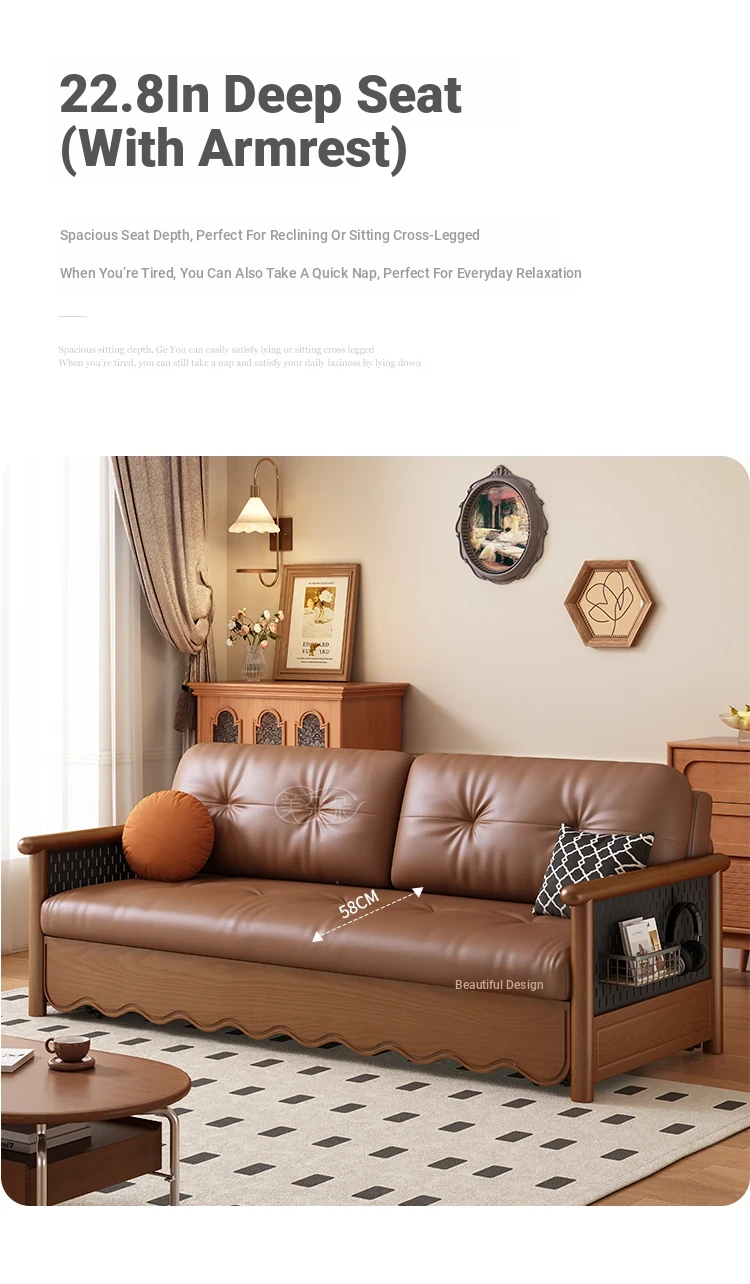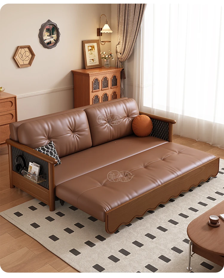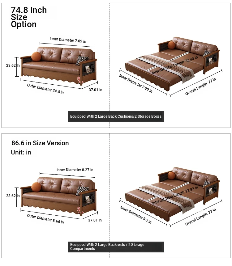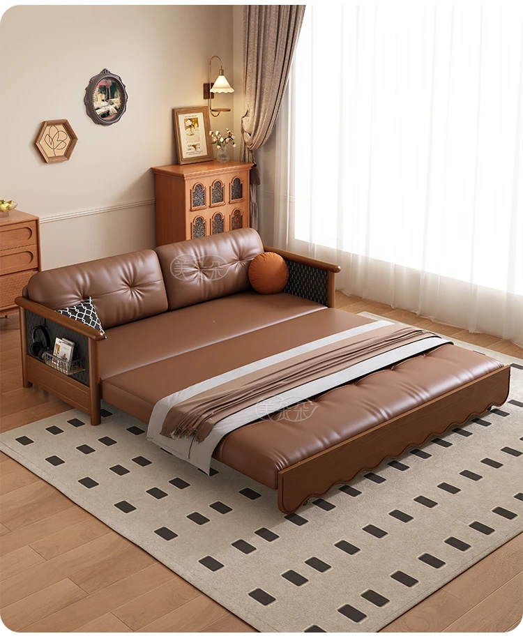 Stylish Solid Wood Sofa Bed with Storage - Foldable & Convertible Design in Elegant Walnut Finish for Modern Living Rooms - 2025 New Arrival