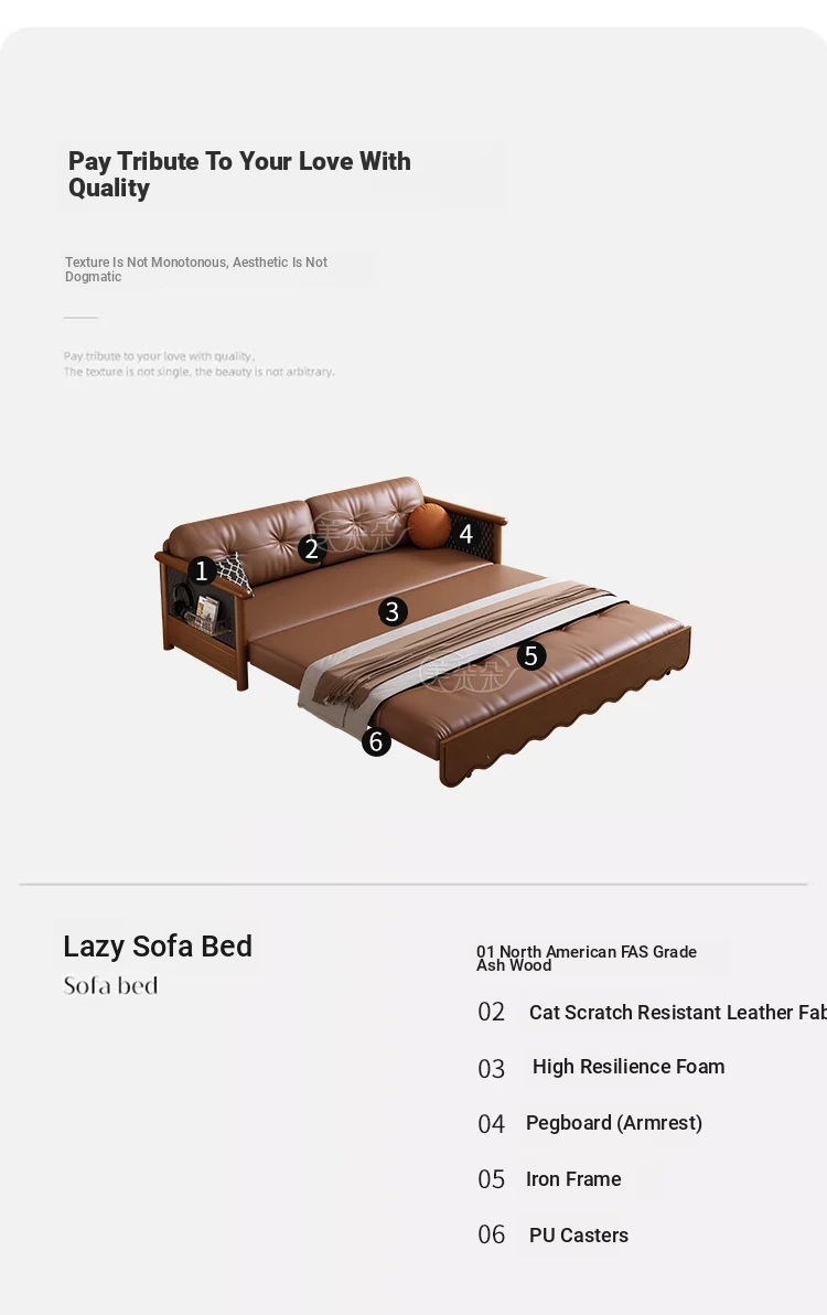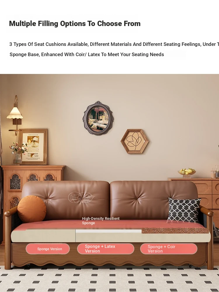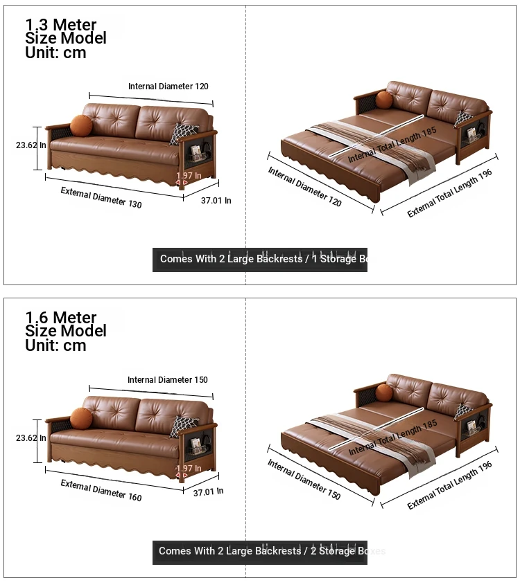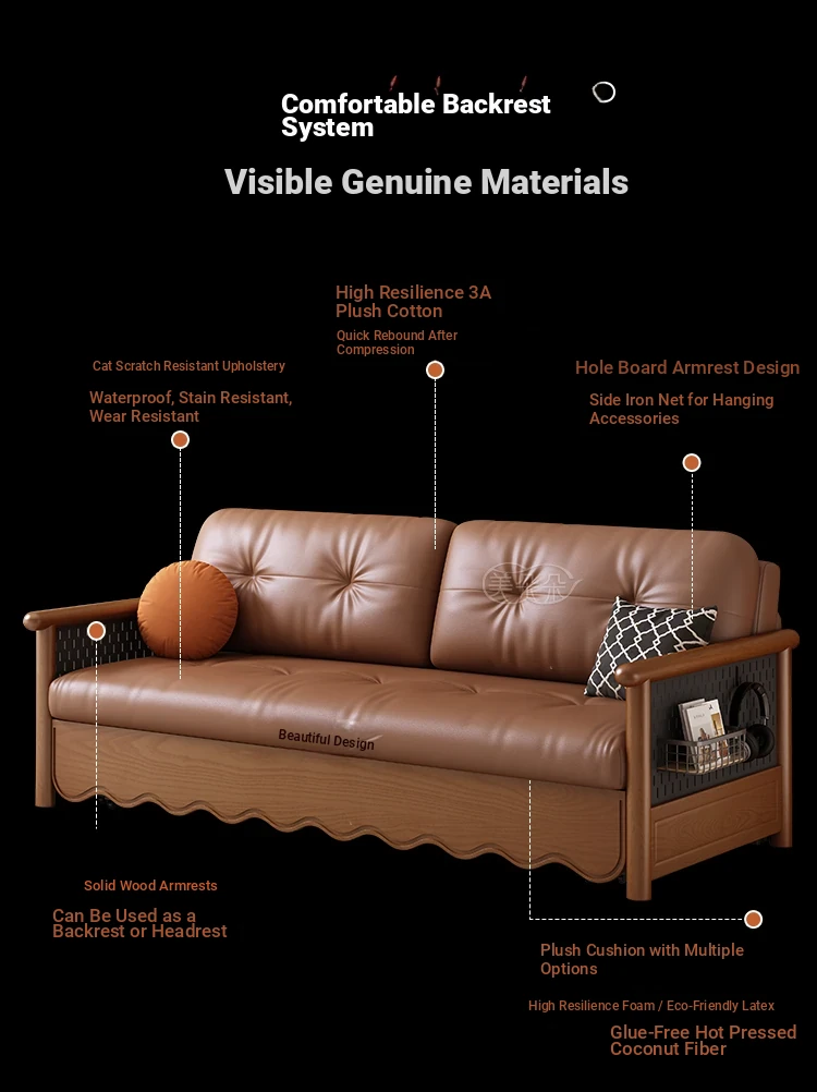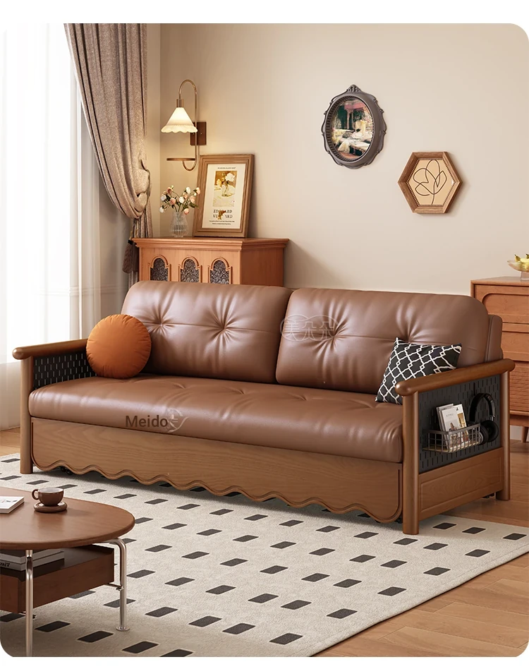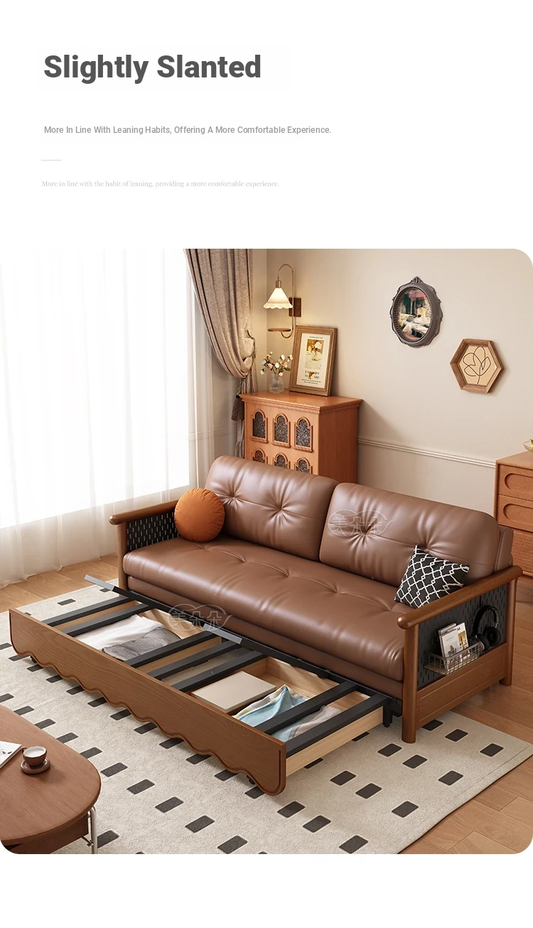 Stylish Solid Wood Sofa Bed with Storage - Foldable & Convertible Design in Elegant Walnut Finish for Modern Living Rooms - 2025 New Arrival