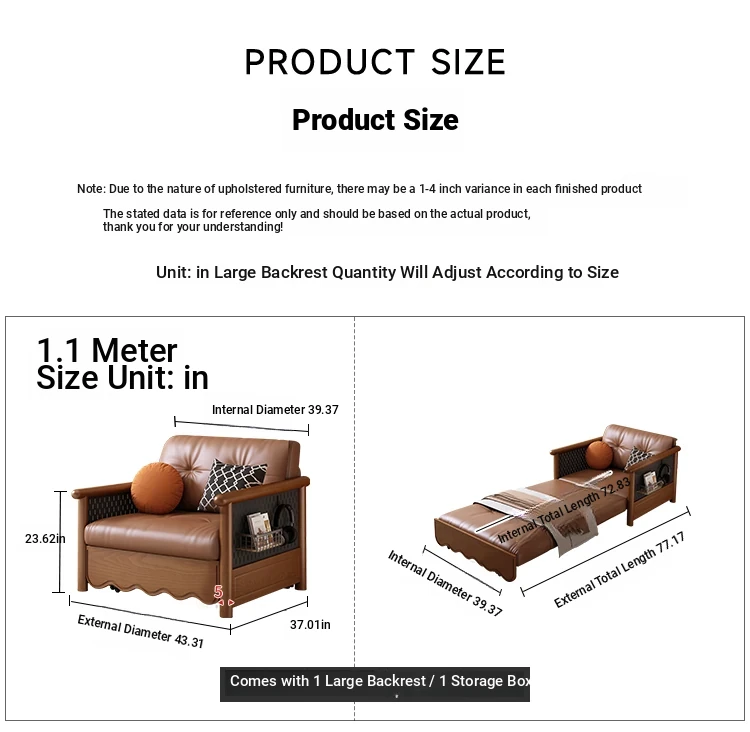 43.31in multi-function sofa bed latex storage