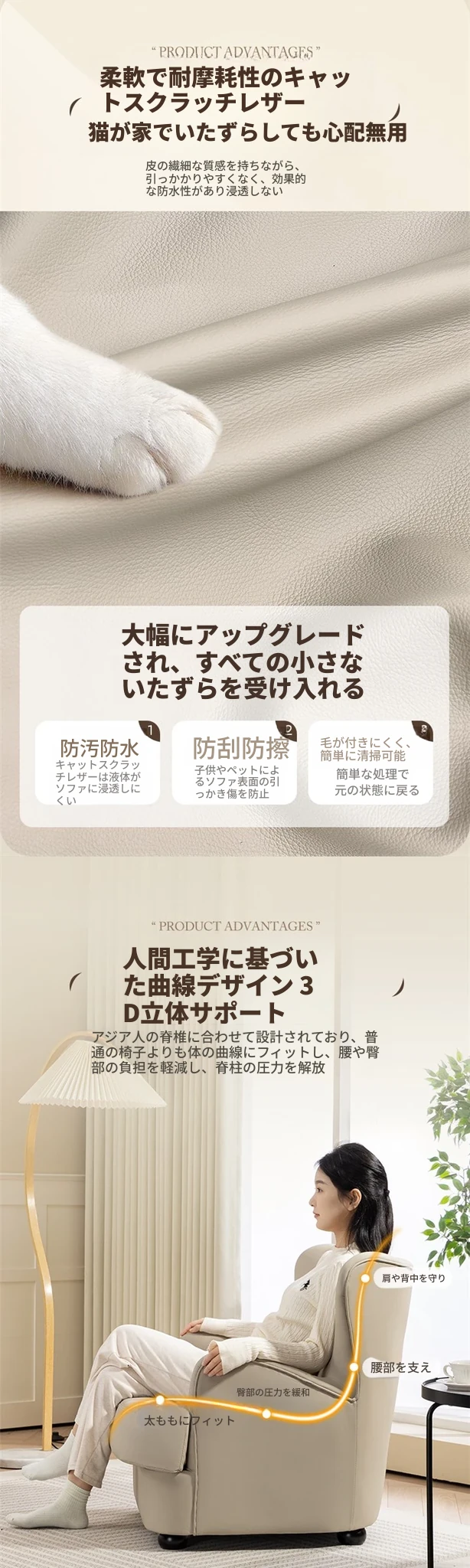 アイボリー色のキャットクロー皮製の固定木脚