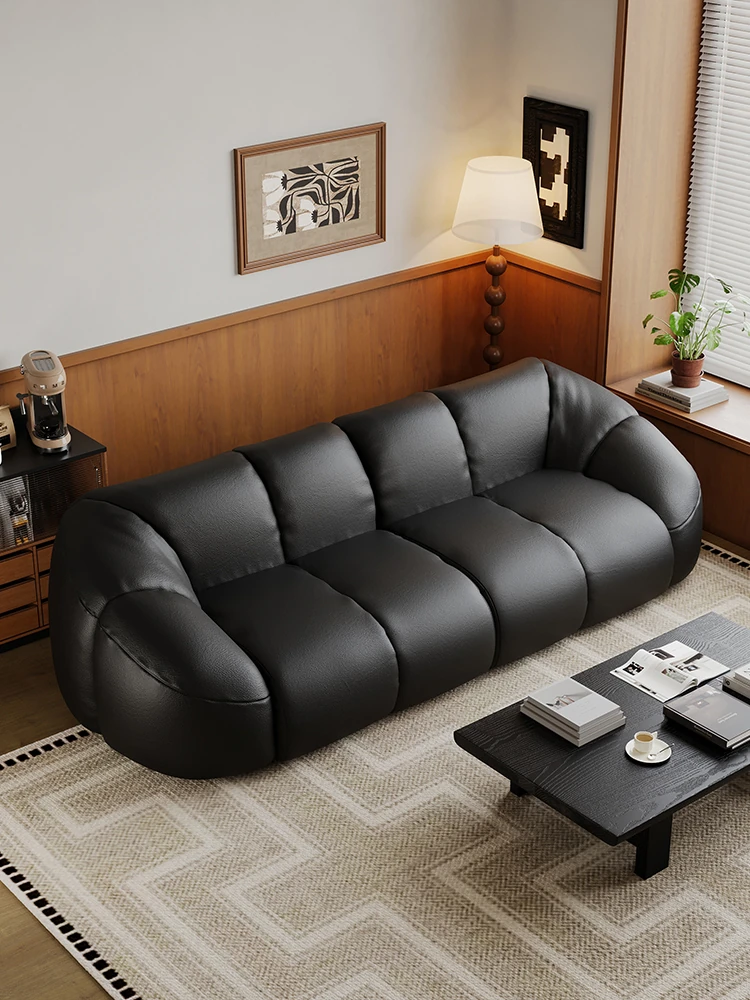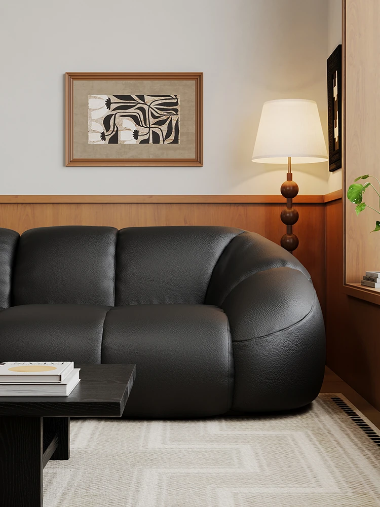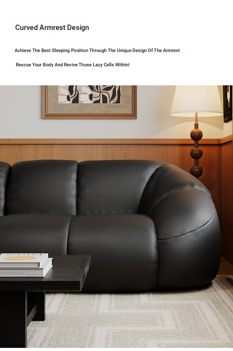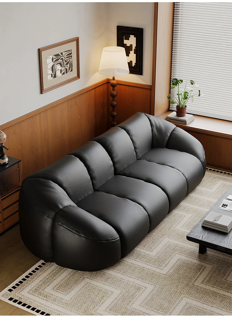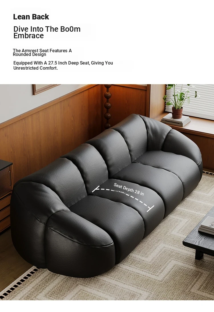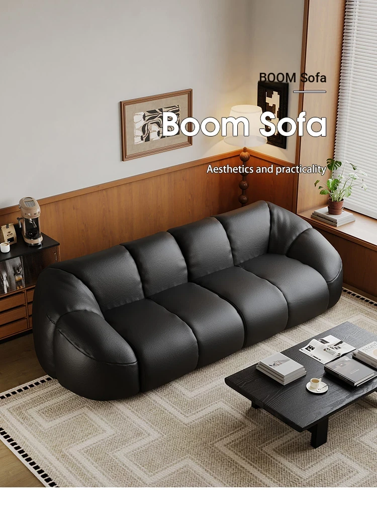 Vintage Black Boom Sofa - Genuine Top Grain Leather for Small to Medium Living Rooms, Perfect for Home Use, Stylish and Durable Design