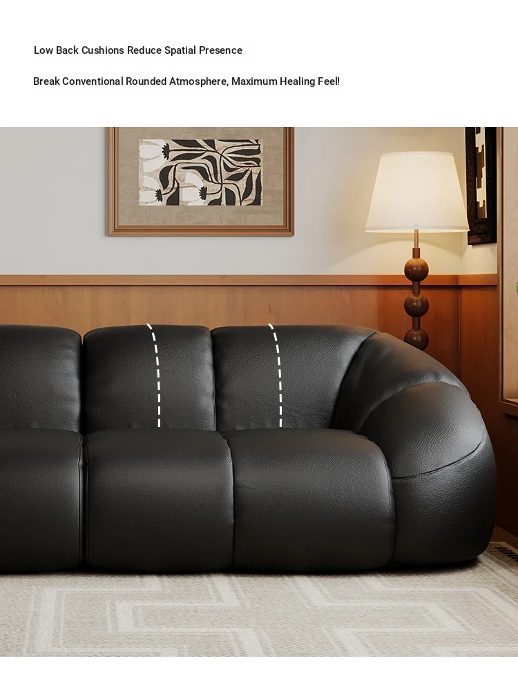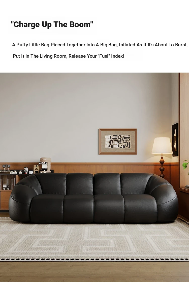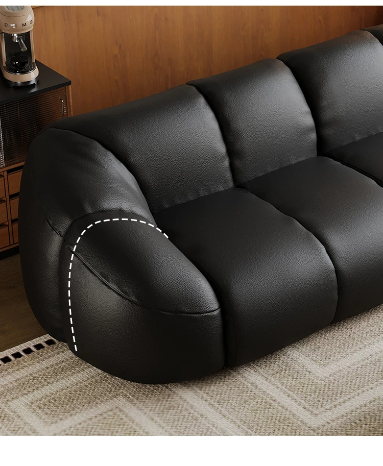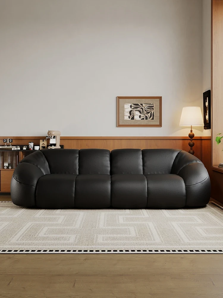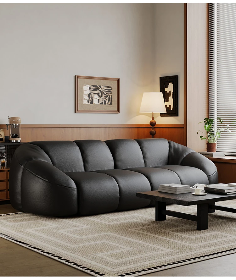 Vintage Black Boom Sofa - Genuine Top Grain Leather for Small to Medium Living Rooms, Perfect for Home Use, Stylish and Durable Design