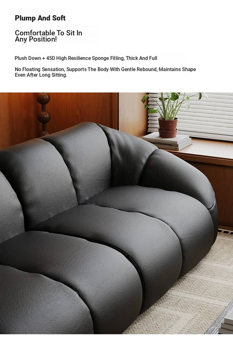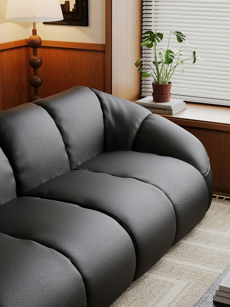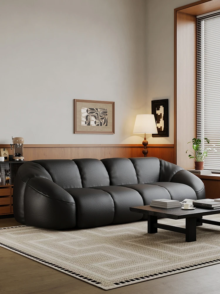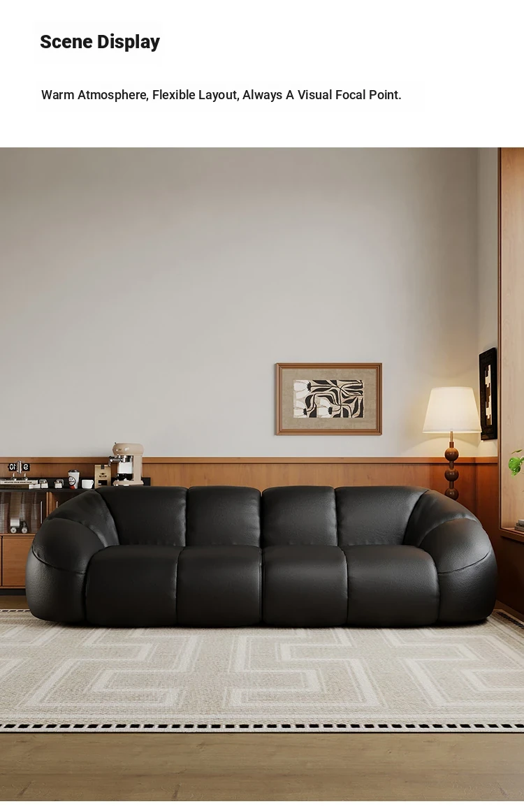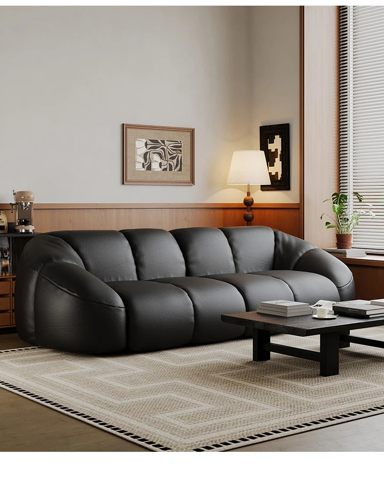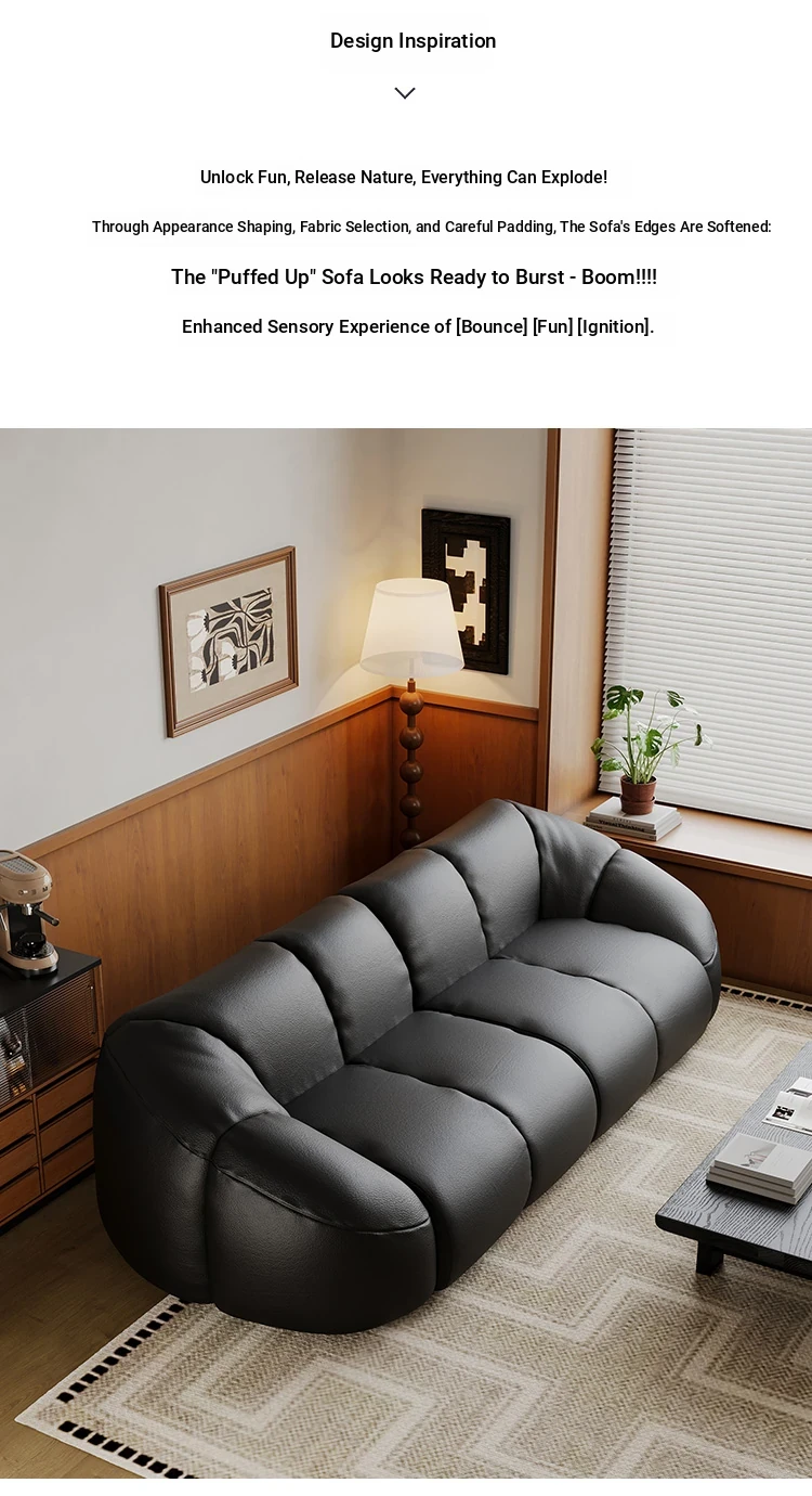 Vintage Black Boom Sofa - Genuine Top Grain Leather for Small to Medium Living Rooms, Perfect for Home Use, Stylish and Durable Design