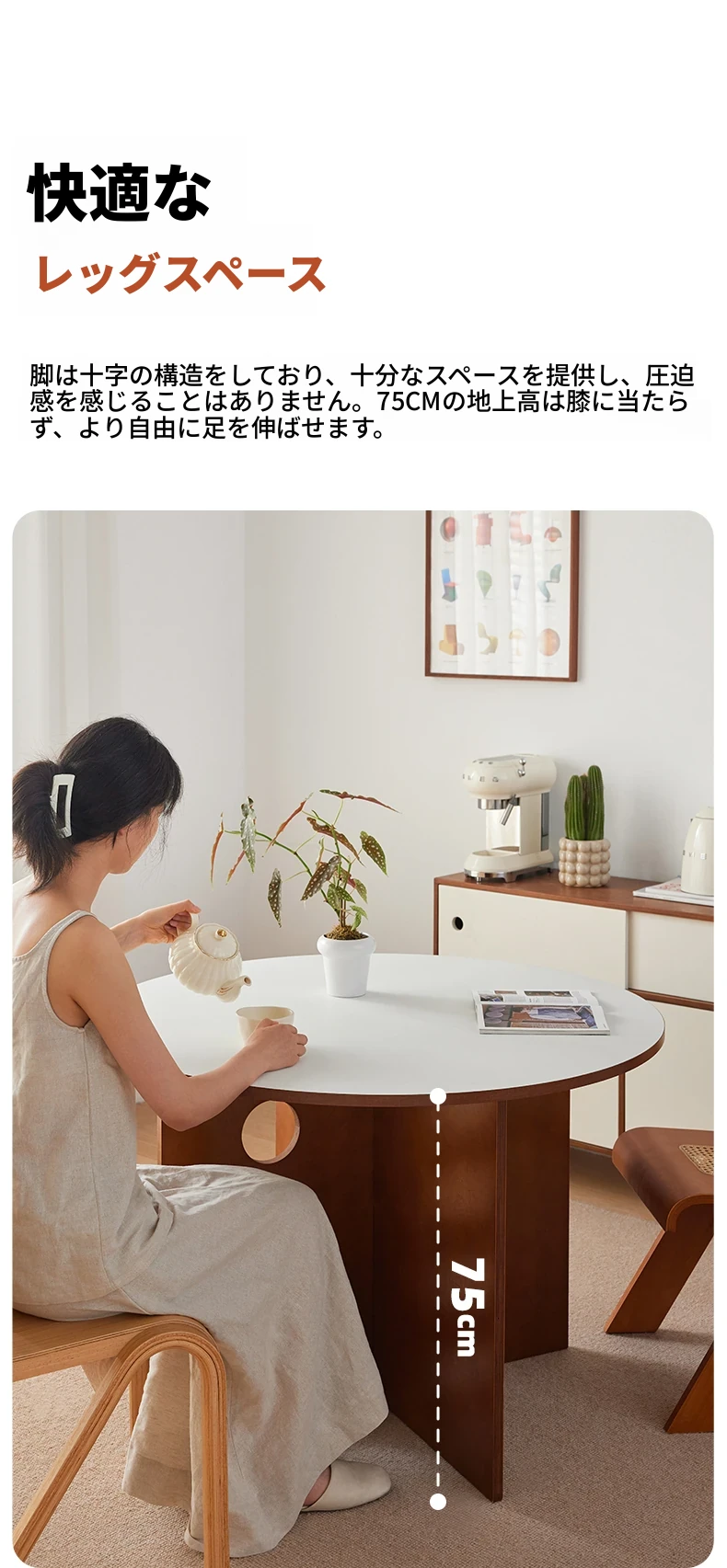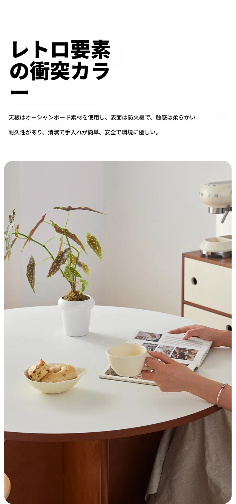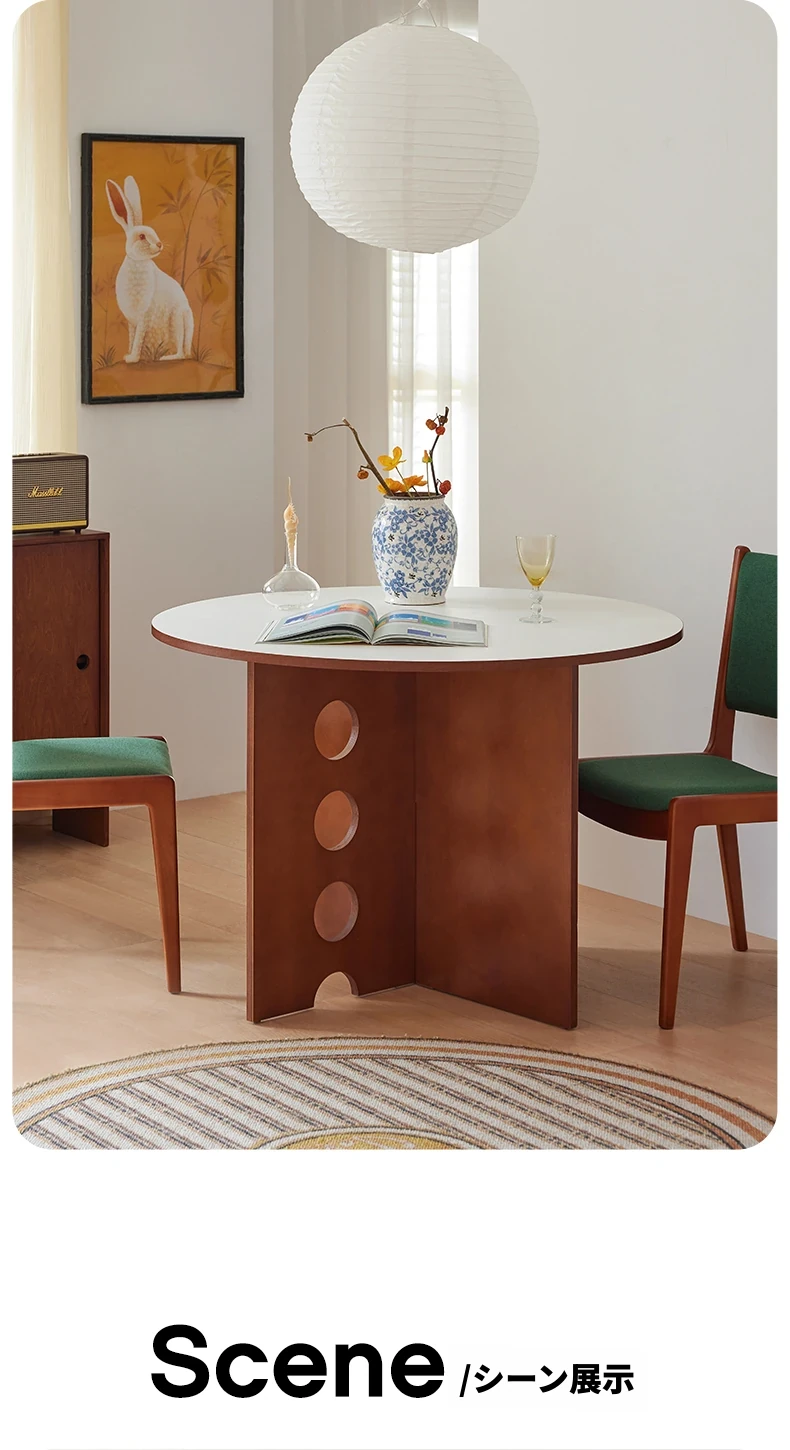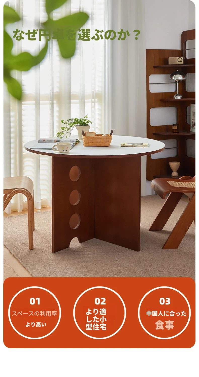 ビンテージ風オーシャンデザインの丸型ダイニングテーブル|小スペースに最適な実木製カフェテーブル|インスタ映えするフレンチスタイルの円卓|おしゃれな家用テーブルで特別なひとときを!
