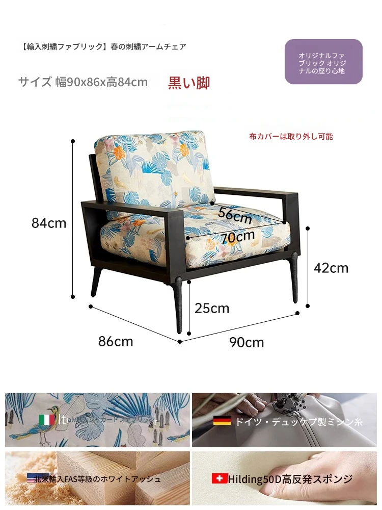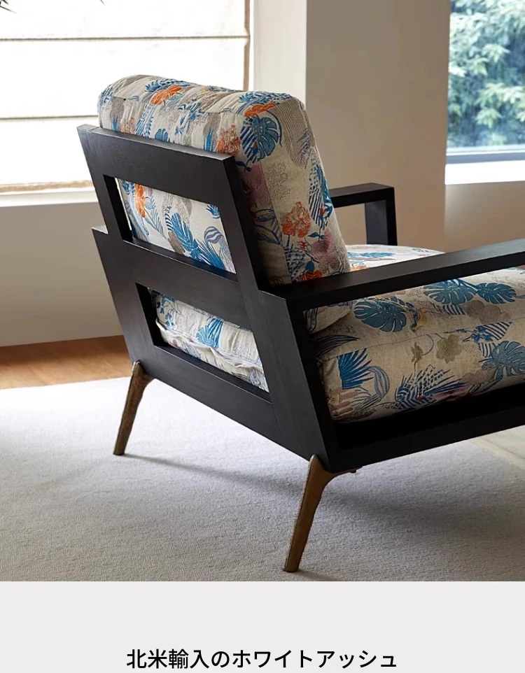 绣春ソファチェア【ホワイトアッシュ+輸入刺繍】ブラック脚