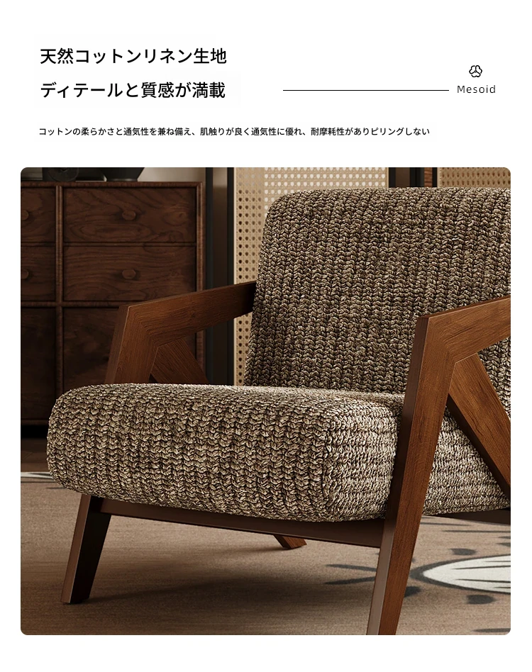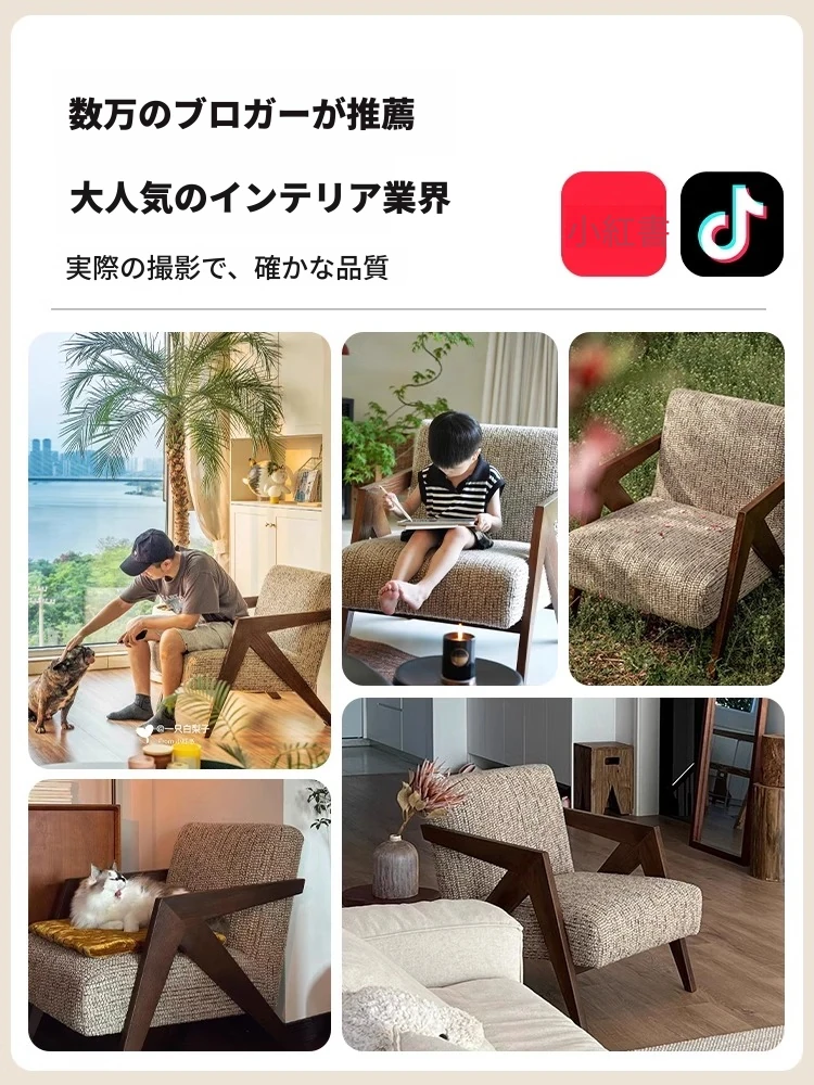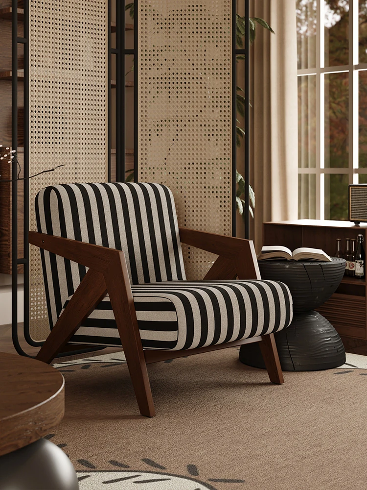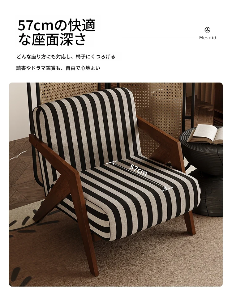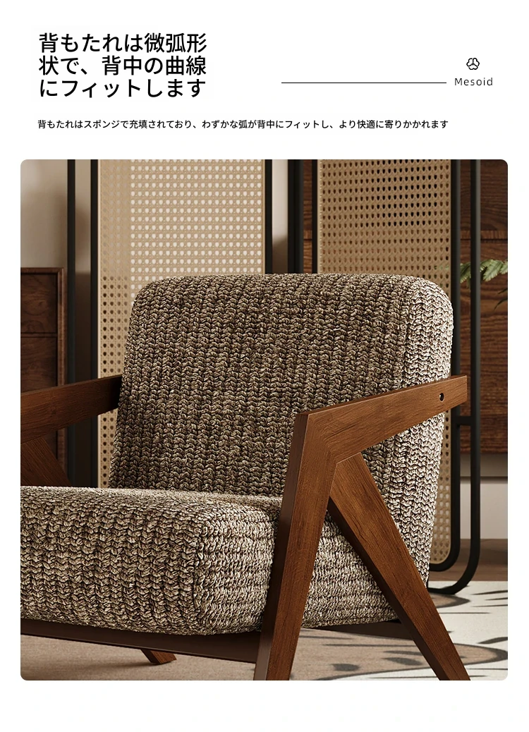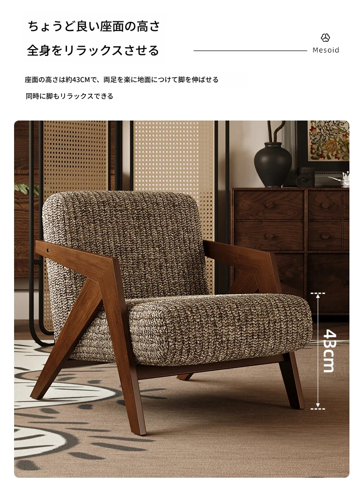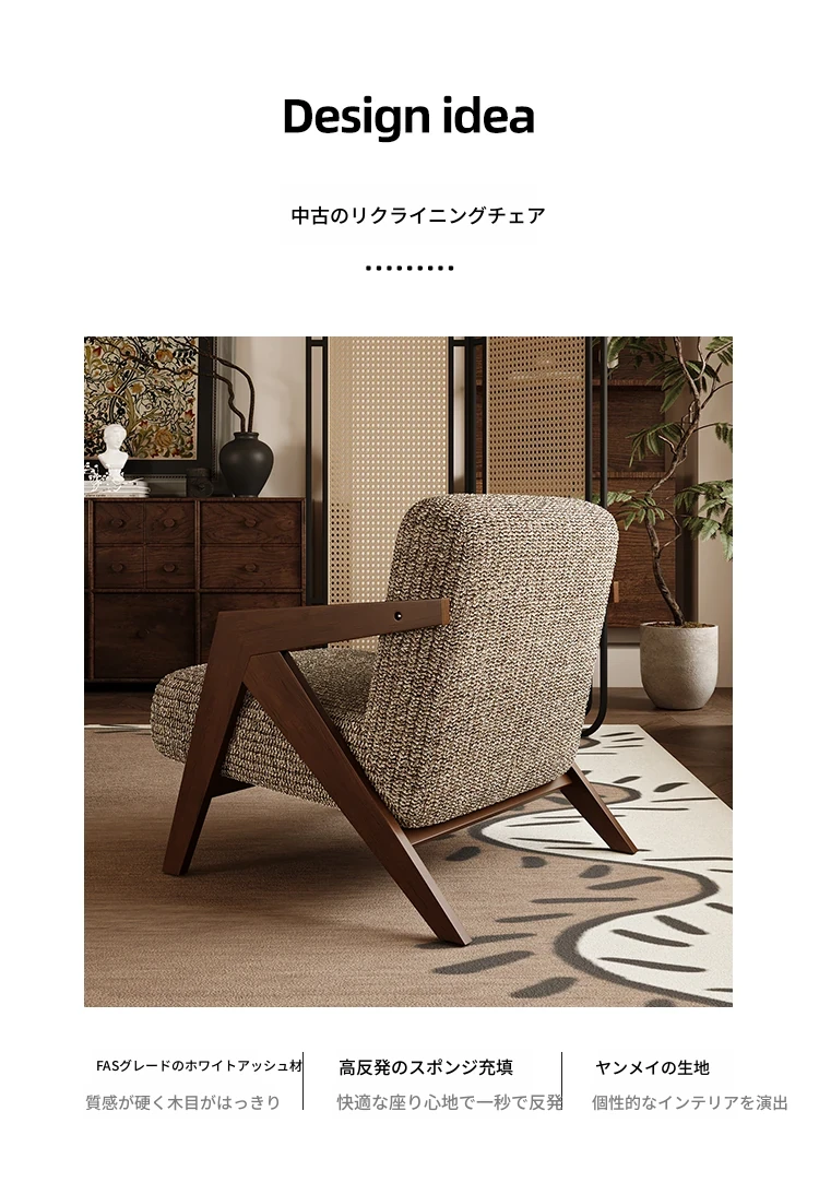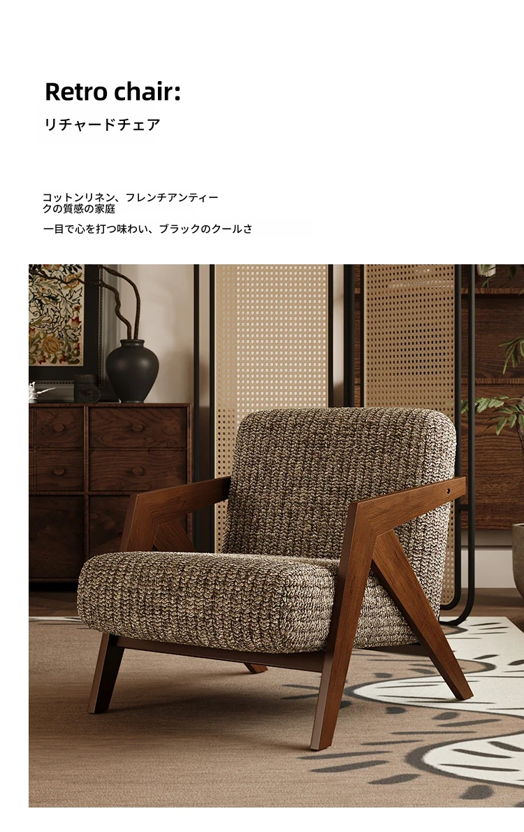 ヴィンテージ風リチャード無垢材シングルソファチェア - 民宿やホテルのリビング、バルコニーにぴったりなデザイナーズレトロリラックスチェア!あなたの空間に温もりとスタイルをプラス。