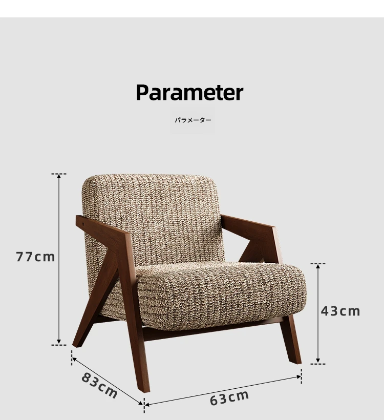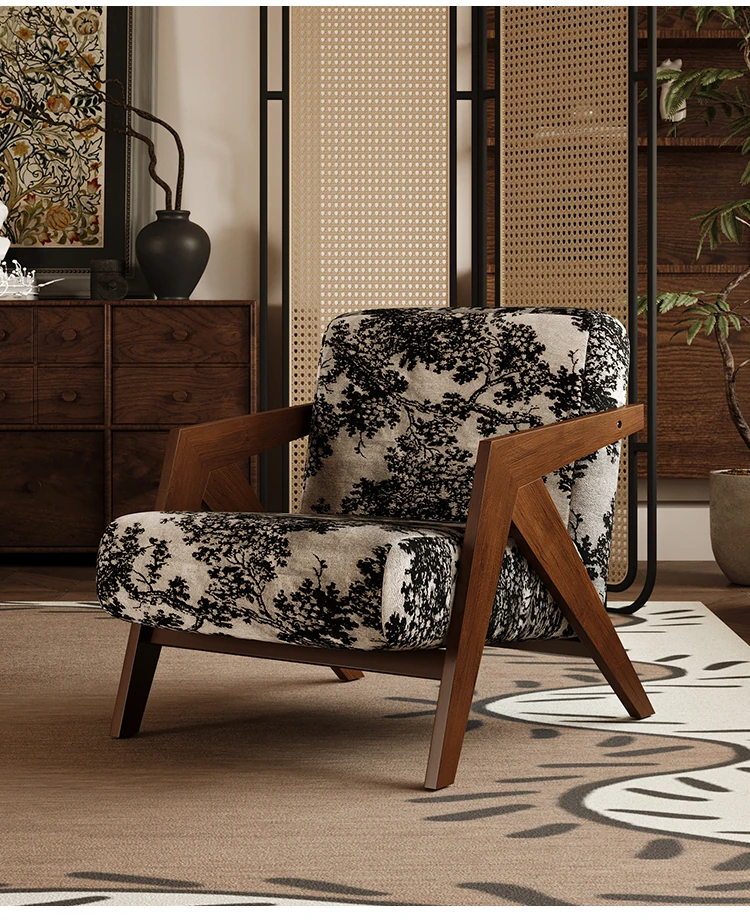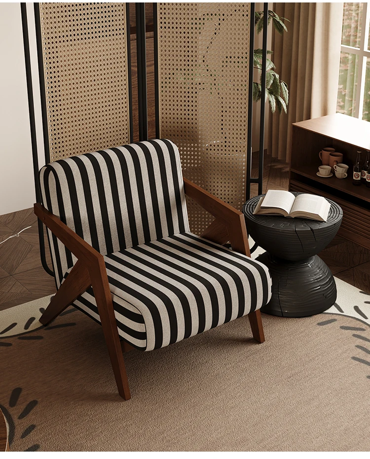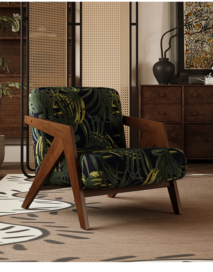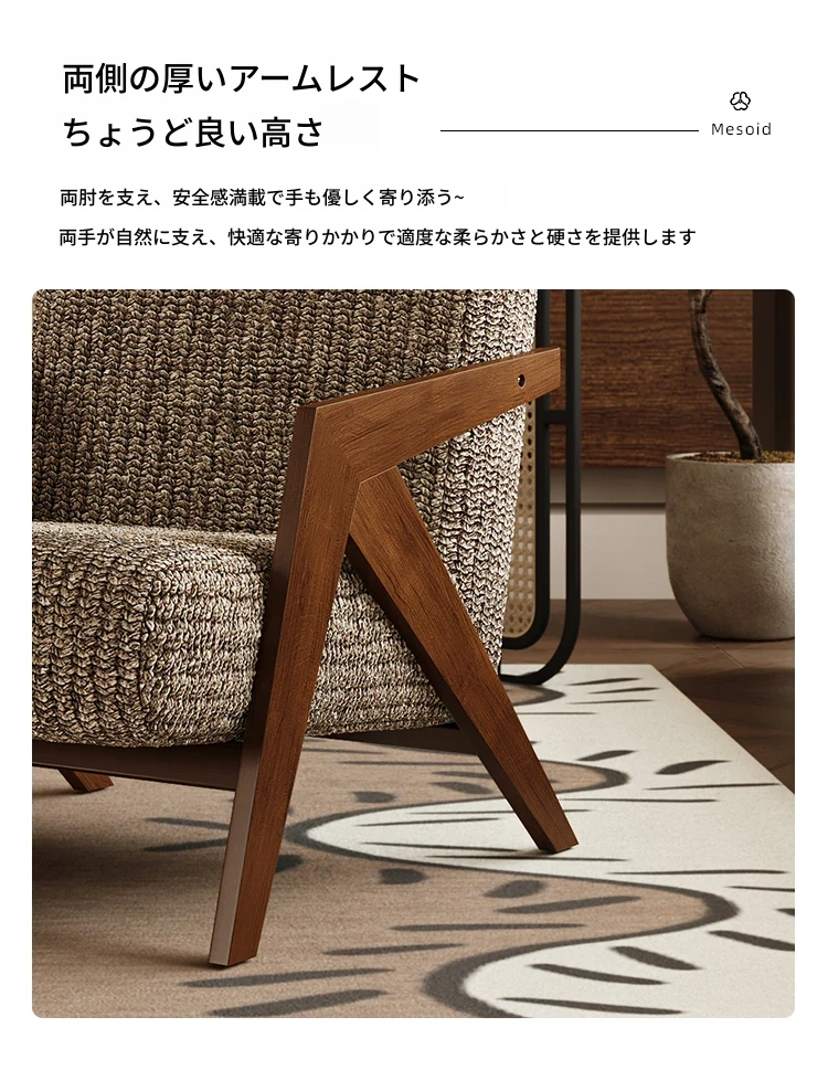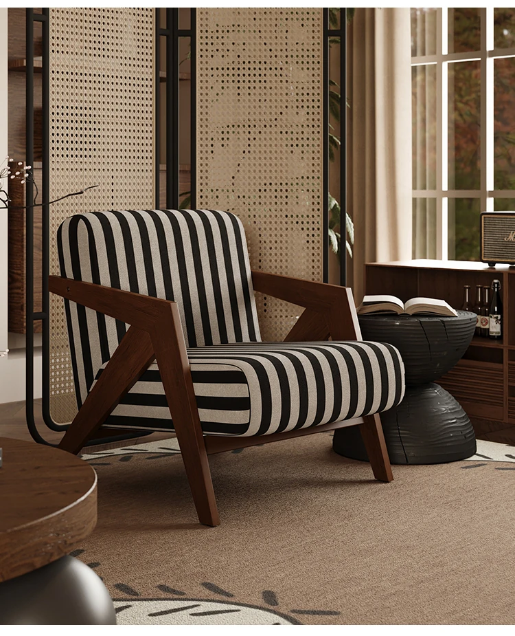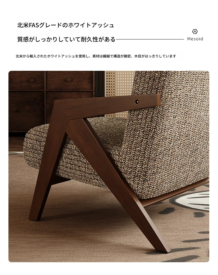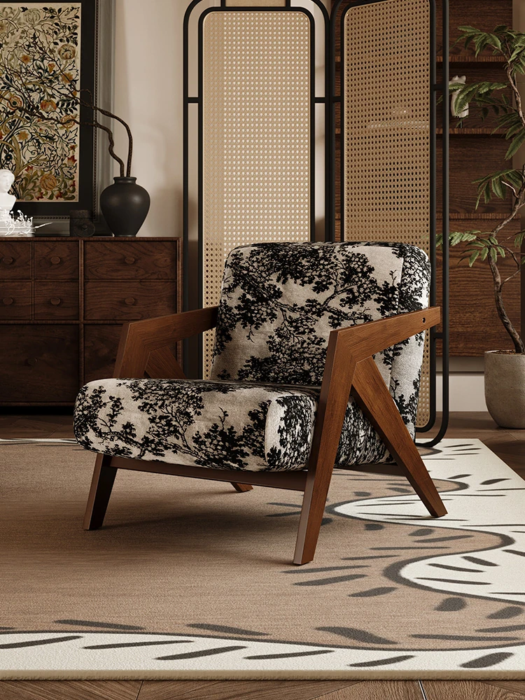 ヴィンテージ風リチャード無垢材シングルソファチェア - 民宿やホテルのリビング、バルコニーにぴったりなデザイナーズレトロリラックスチェア!あなたの空間に温もりとスタイルをプラス。