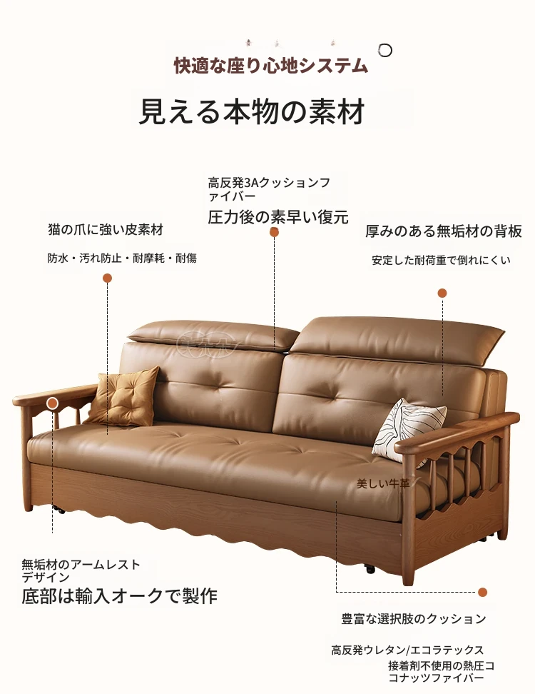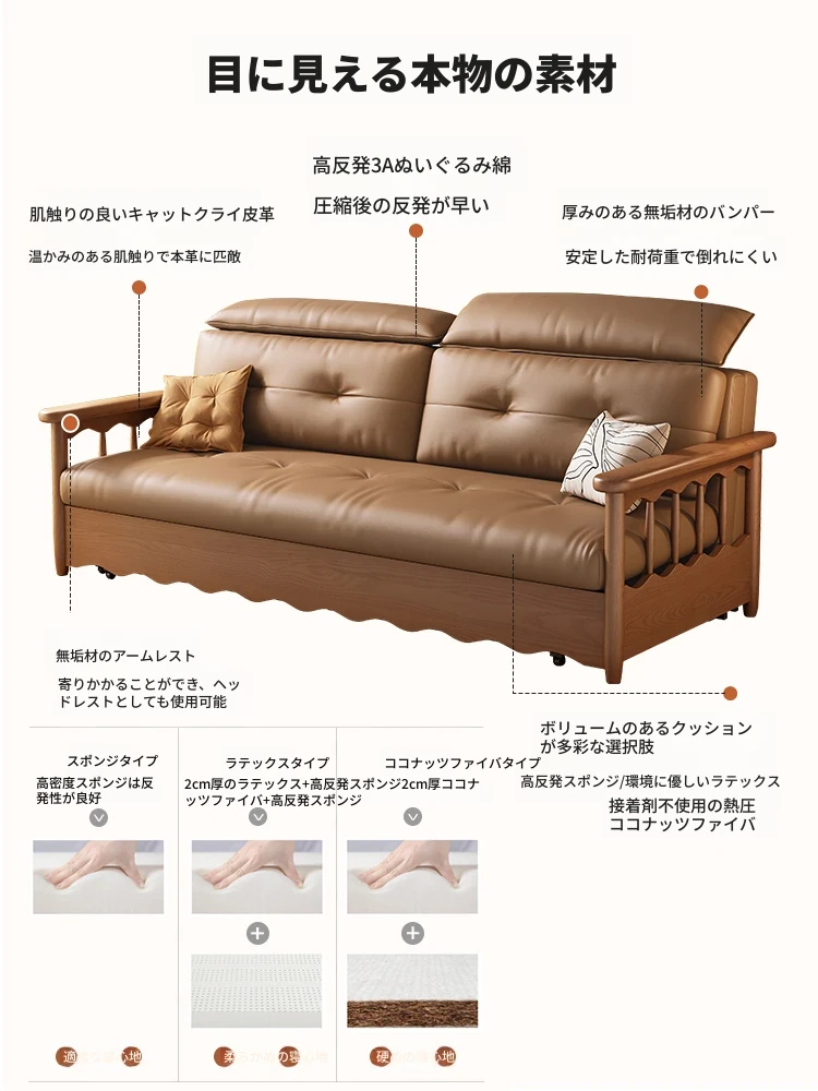1.7m多機能ソファベッドココナッツ繊維収納タイプ