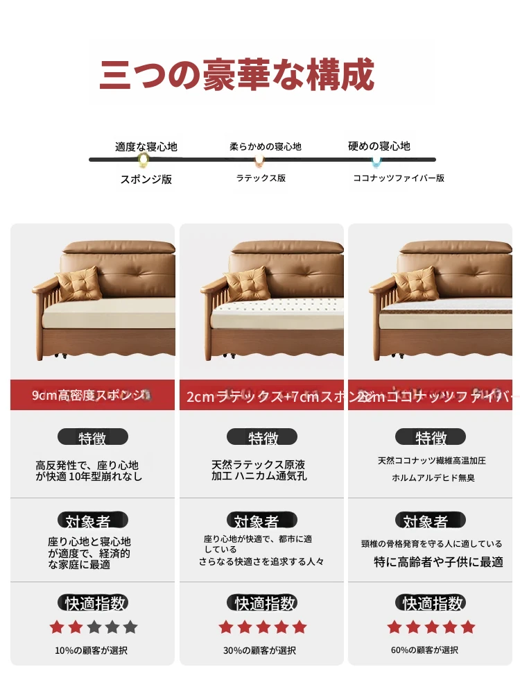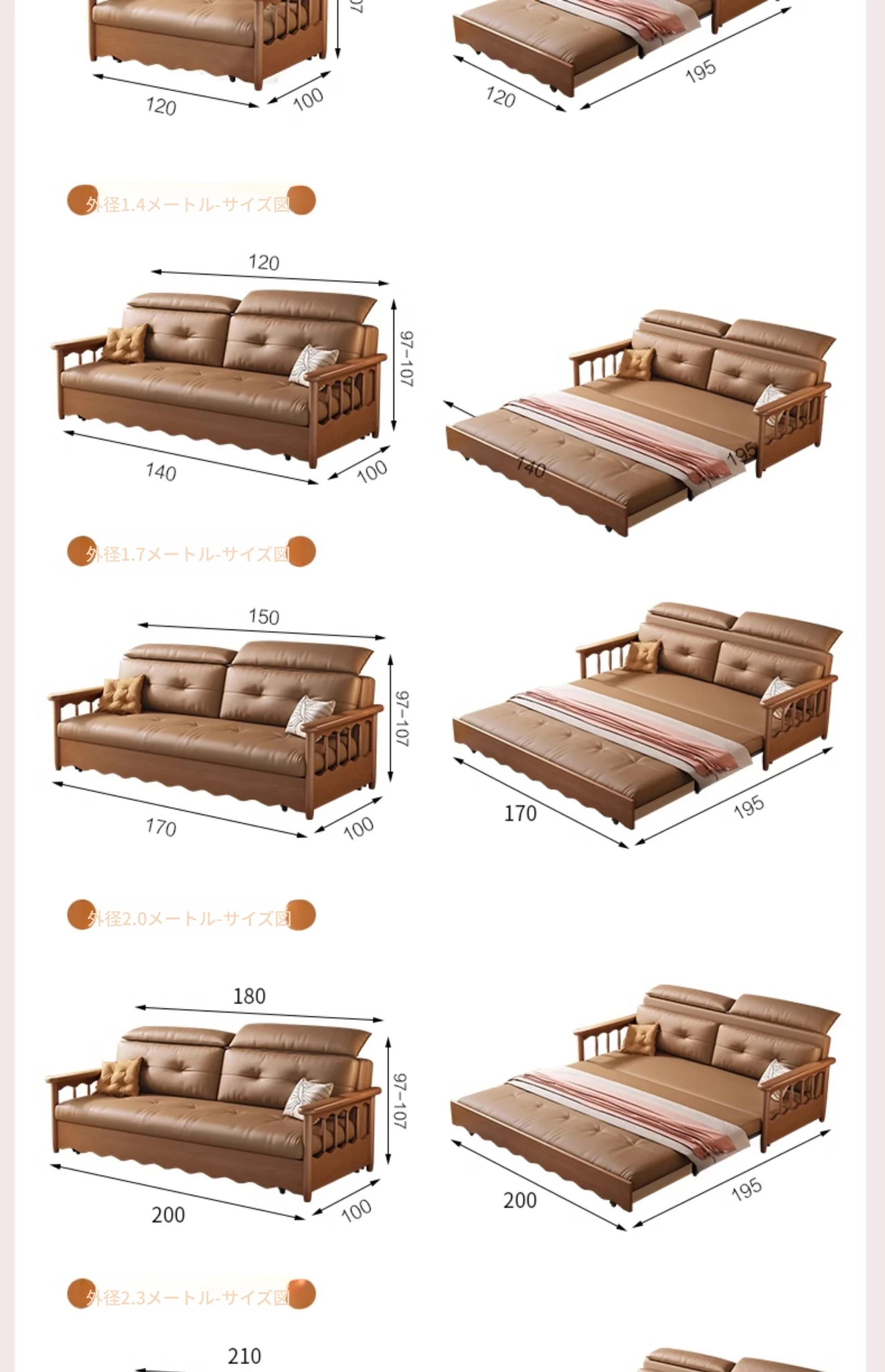 2.3m多機能ソファベッドココナッツ繊維収納タイプ