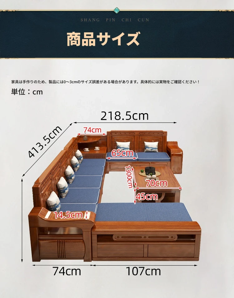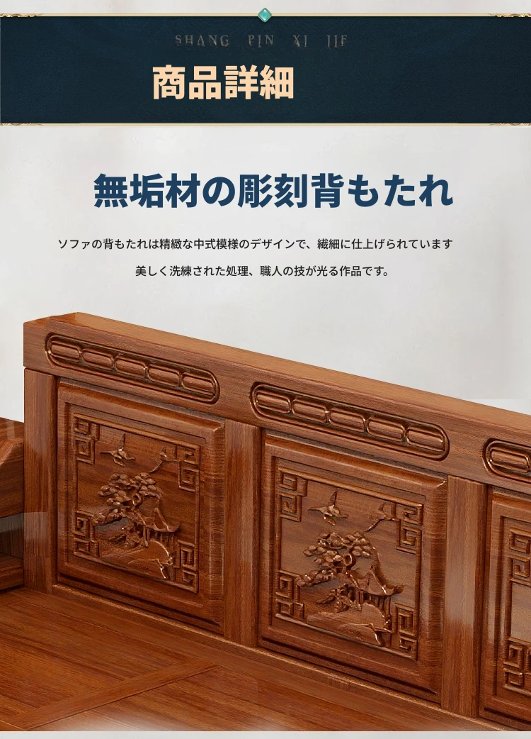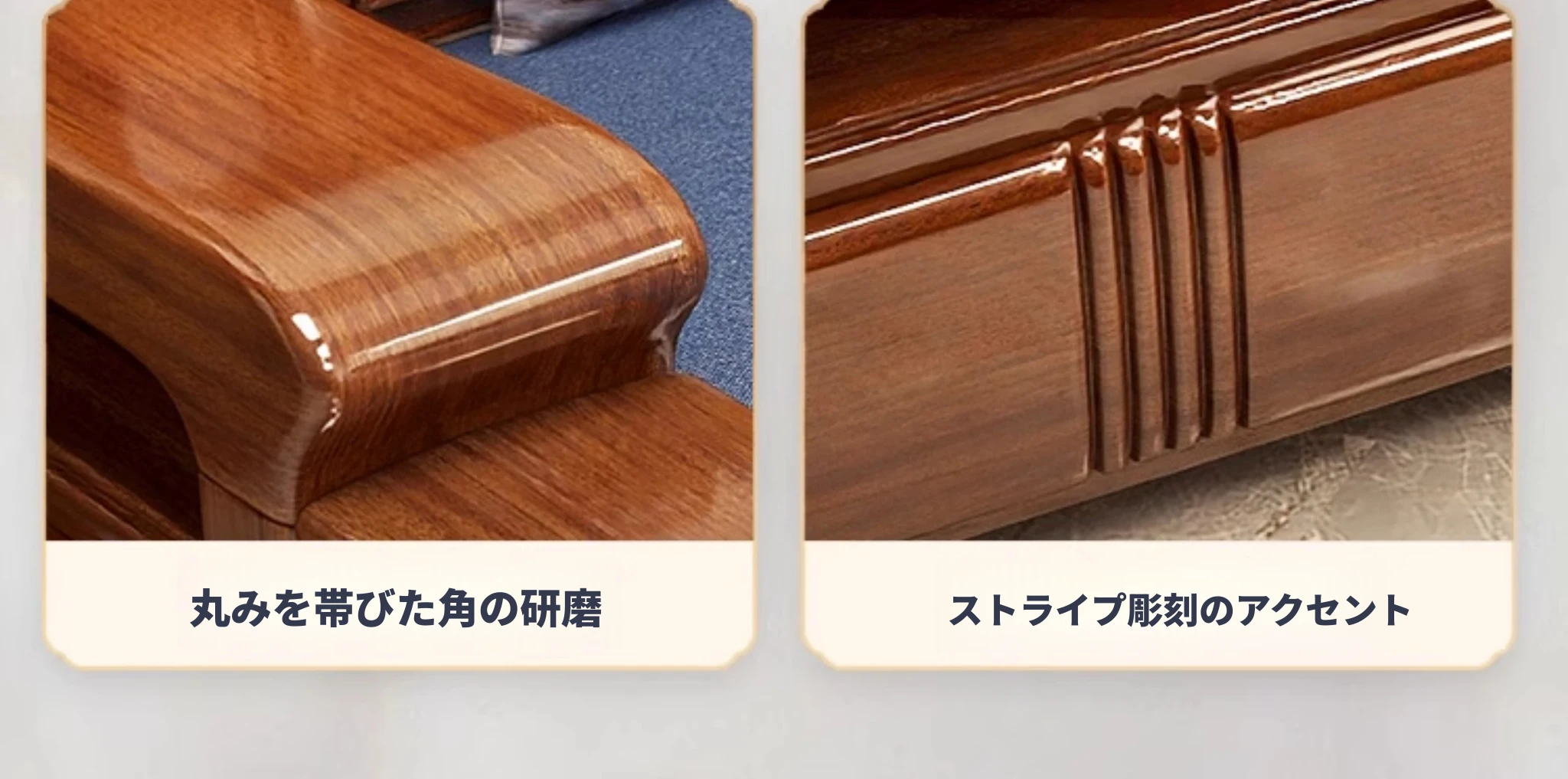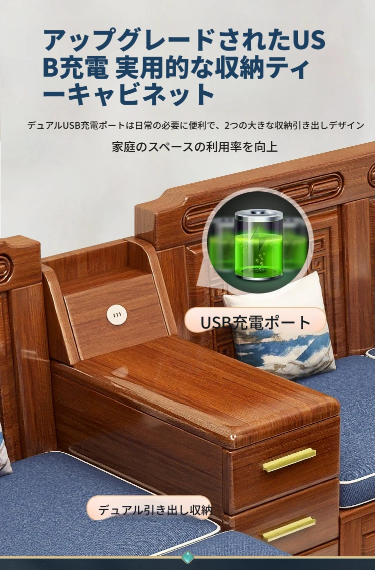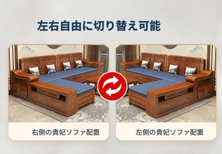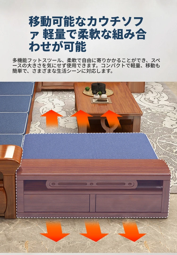 無垢材使用のウォールナットソファ、全木製の収納付きコンビネーション、実用的な木製コーナーソファ。中華風デザインで、リビングルームにぴったりなスタイリッシュな家具です!