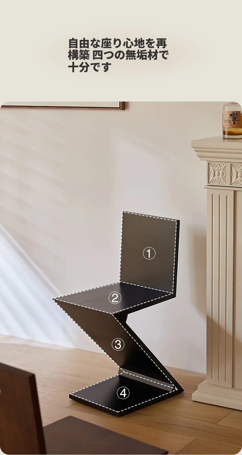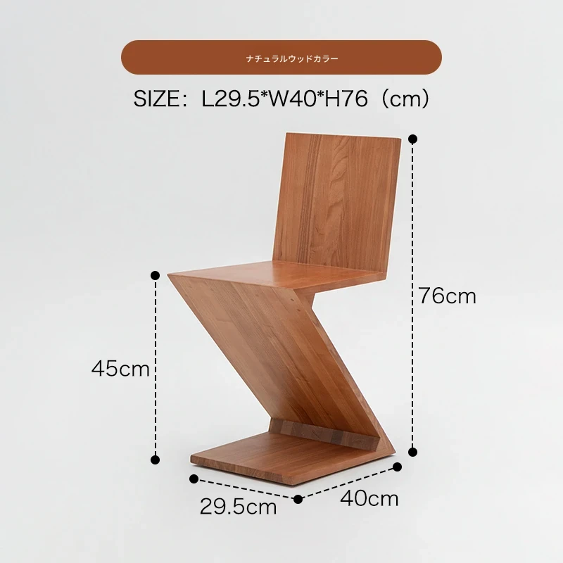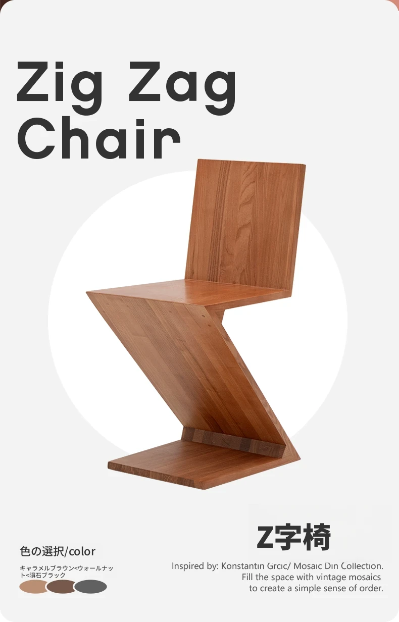 小卡家居Z字椅/ヴィンテージ木製背もたれ付きダイニングチェア、侘寂スタイルのデザイナー創造的な一人掛け椅子で、リラックスした雰囲気を演出。