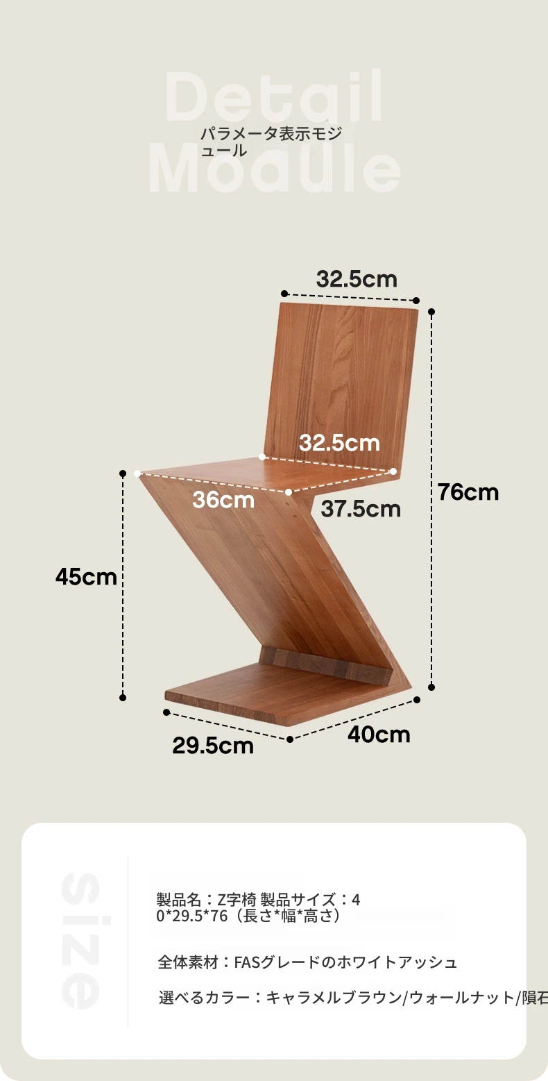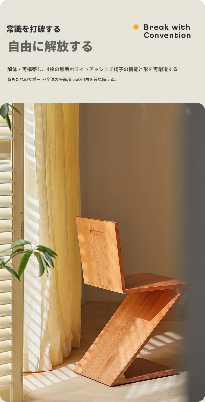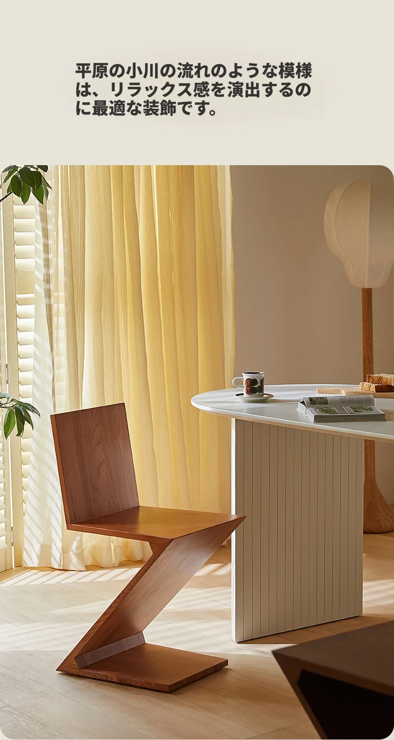 小卡家居Z字椅/ヴィンテージ木製背もたれ付きダイニングチェア、侘寂スタイルのデザイナー創造的な一人掛け椅子で、リラックスした雰囲気を演出。